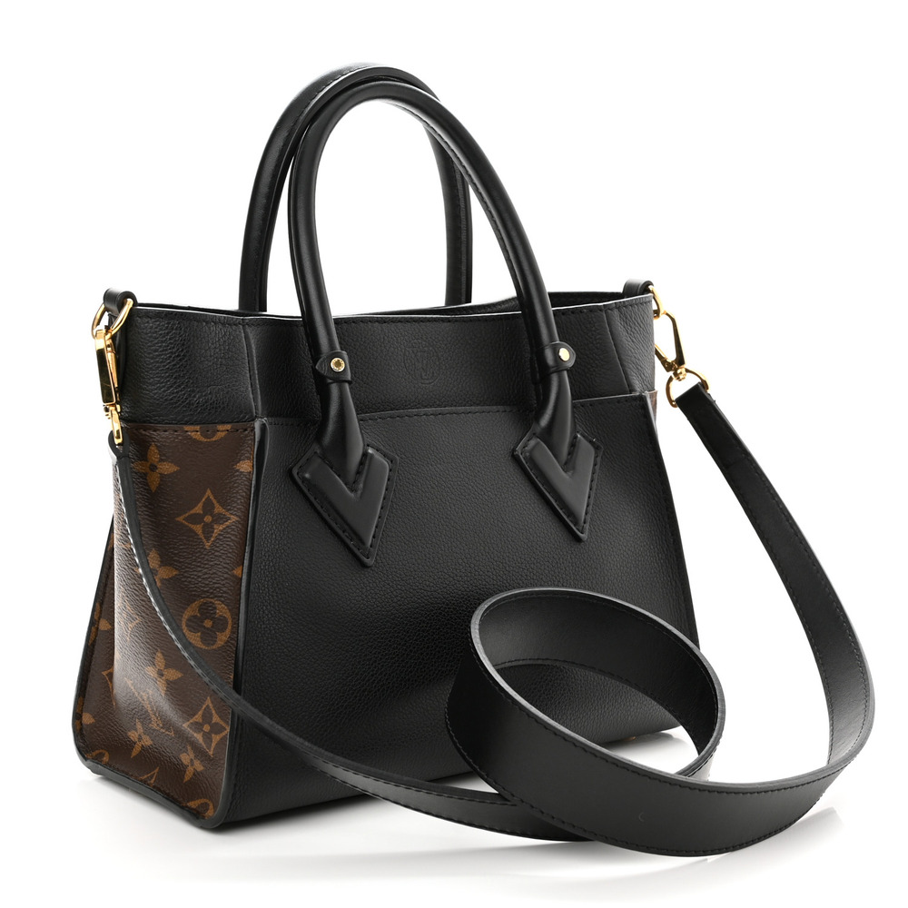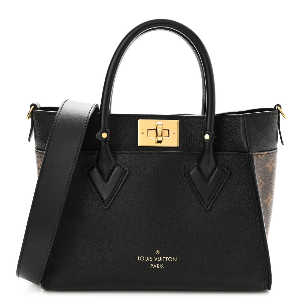 The On My Side MM tote bag is fashioned from an elegant combination of small-grained calf leather and emblematic Monogram canvas. The large outside pockets in contrasting canvas create a bag-in-a-bag look. The roomy interior can easily hold everything needed for a day at the office while the adjustable strap makes for practical cross-body carry.
