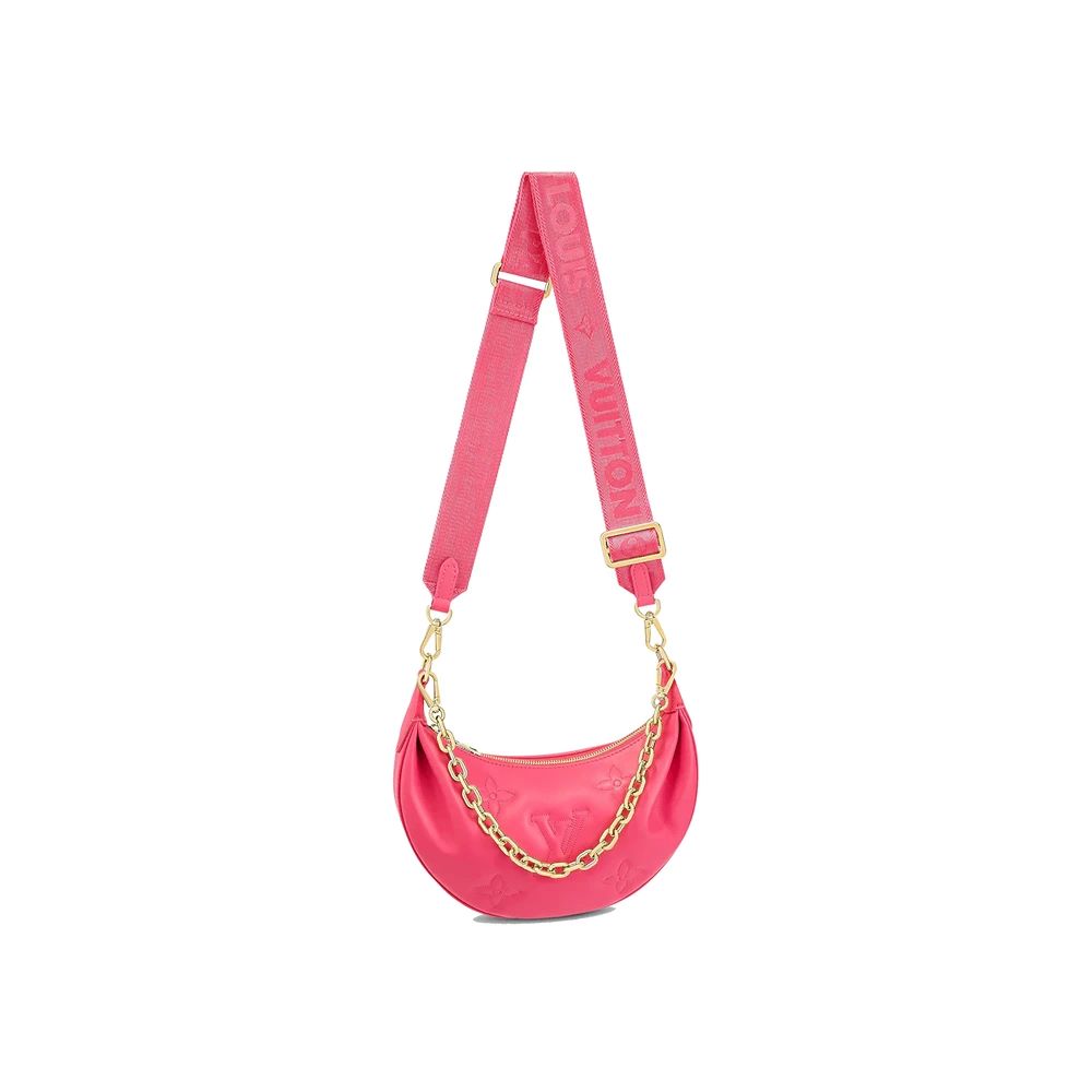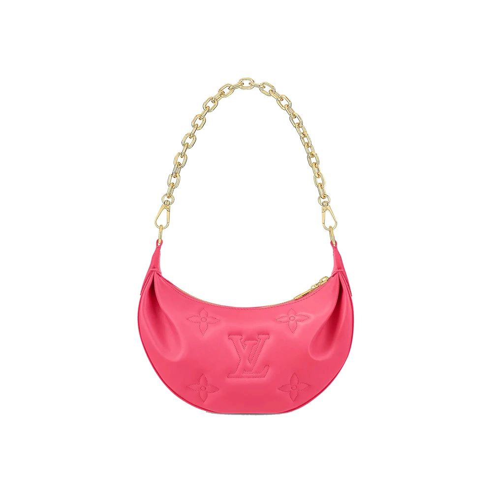 The Over The Moon delights with its versatile shape in quilted calf leather. The embroidered puffy Monogram pattern brings a statutory feel while the adjustable strap and gold-color chain deliver a myriad of carry options: elbow, short shoulder, cross-body, and long shoulder. With the strap removed, it can even be carried as an evening clutch.