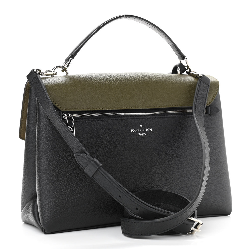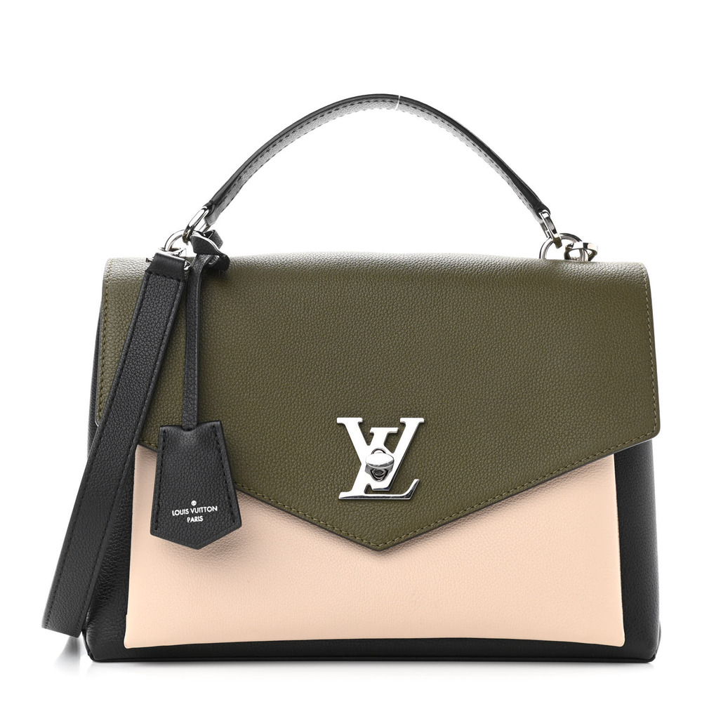 The MyLockMe Chain Bag is made from grained calf-leather in a striking two-tone colorway. With its sliding gold-color chain and gold-color LV Twist lock, this miniature ?schoolbag? brings elegance to any hour of the day or night. The long chain strap can be adjusted for short-shoulder carry or worn cross-body.