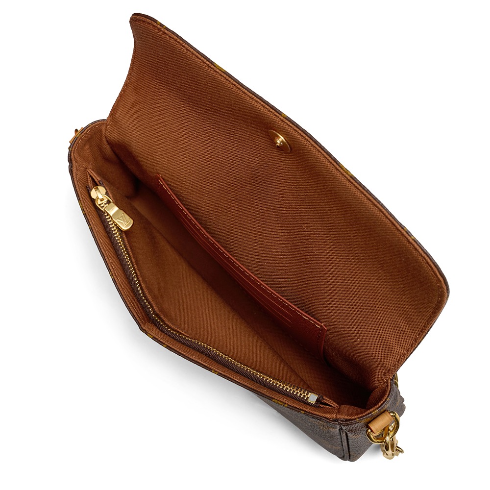 The Louis Vuitton Wallet on Chain Ivy Bag, inspired by the Sac Recoleta handbag from the 2000s, boasts Monogram canvas and aged natural cowhide leather trim. It offers versatility with a removable gold-color chain for short-shoulder carry and an adjustable, detachable leather strap for cross-body or long-shoulder wear. Featuring ample storage with three card slots, a zipped pocket, and a main compartment, it’s perfect for everyday essentials.