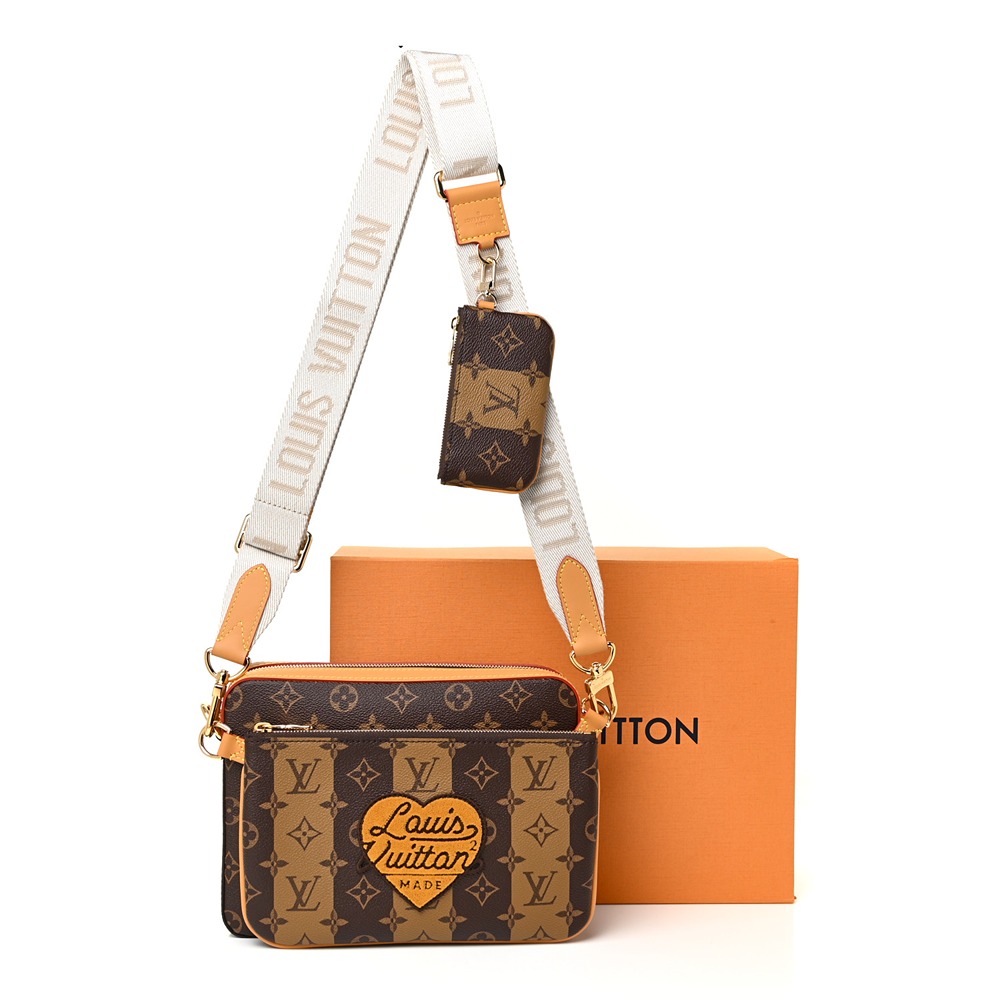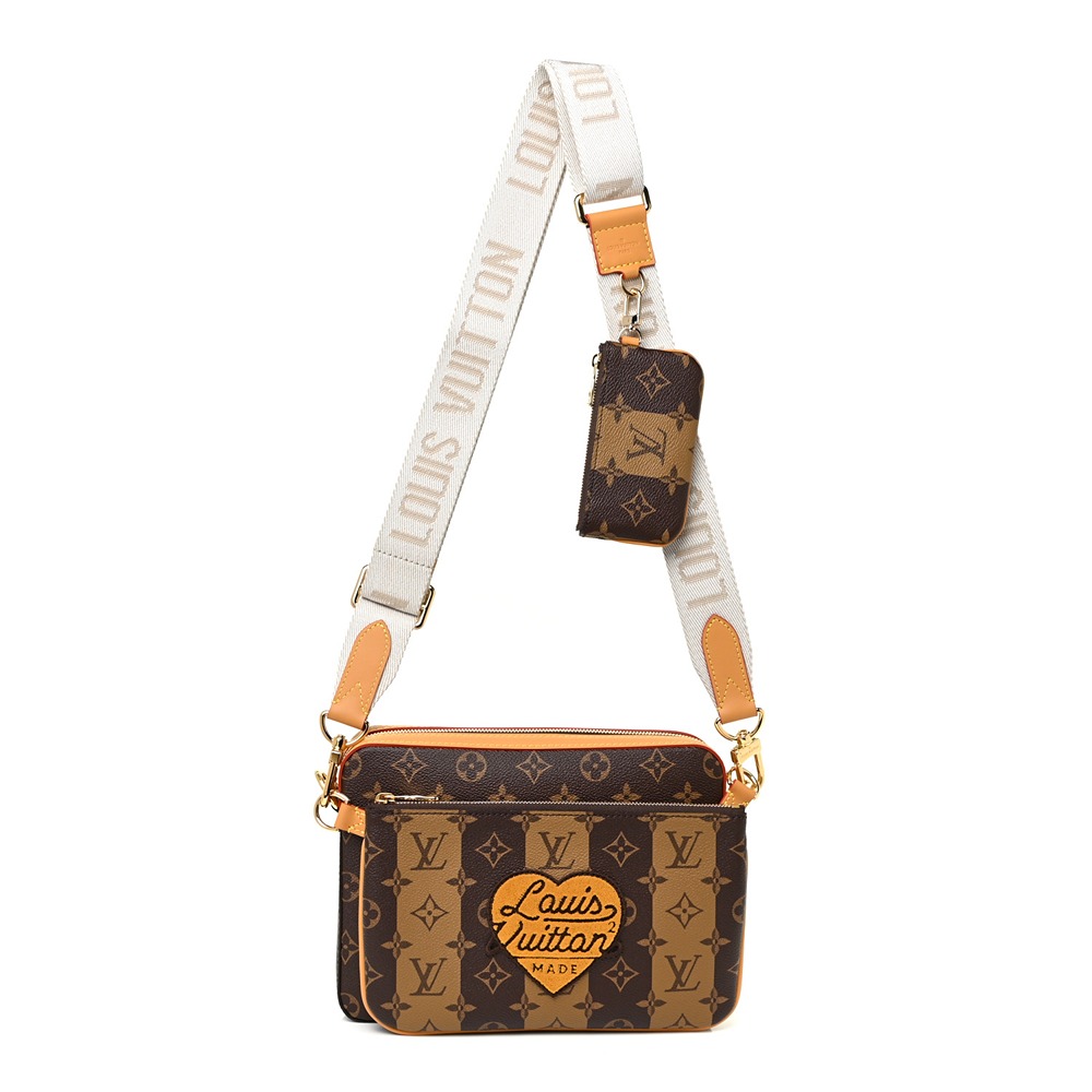 The fusion of tradition and modernity, the Louis Vuitton X NIGO Messenger Bag merges the iconic monogram and reverse coated canvas with vachetta leather trim. This chic messenger-style bag includes a removable pochette, tufted Louis Vuitton heart, adjustable canvas shoulder strap, and a versatile removable coin purse