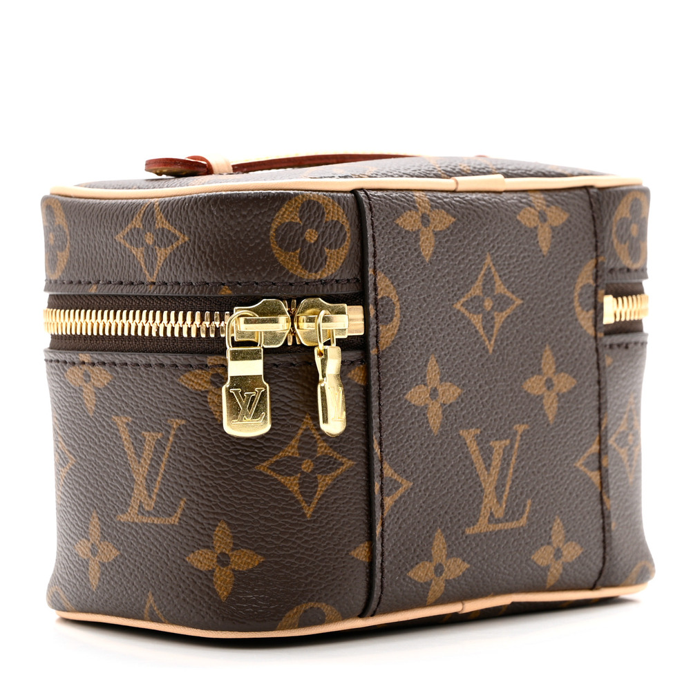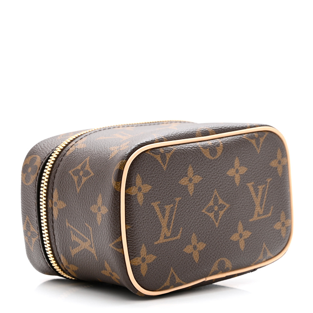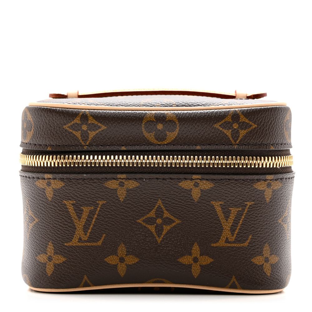 Small and surprisingly roomy, the Nice Nano vanity case can be used to store beauty essentials like nail polish or lipstick in a bathroom, or as a bag inside a bag to keep small items organized. Fashioned from Monogram canvas with a top handle that flattens for easy packing, it easily fits into even tight spaces.