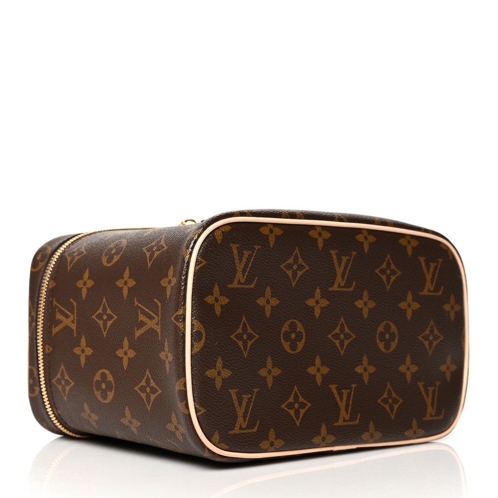 Small and surprisingly roomy, the Nice Nano vanity case can be used to store beauty essentials like nail polish or lipstick in a bathroom, or as a bag inside a bag to keep small items organized. Fashioned from Monogram canvas with a top handle that flattens for easy packing, it easily fits into even tight spaces.