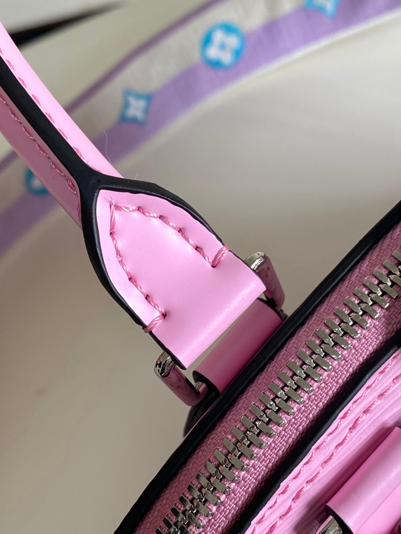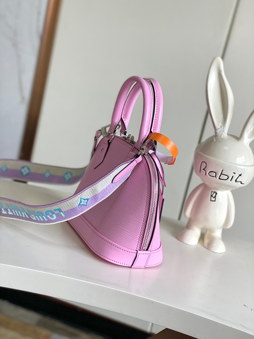 The Louis Vuitton Epi Alma PM exudes elegance with its stunning metallic black textured epi leather. Featuring smooth cowhide rolled leather top handles and trim, this bag is accented with silver hardware, including durable handle rings and a double wrap-around zipper. The interior, lined with grey microfiber, offers practicality with patch pockets, making it an ideal accessory for both day and evening wear. Size:23.5 x 17.5 x 11.5 cm