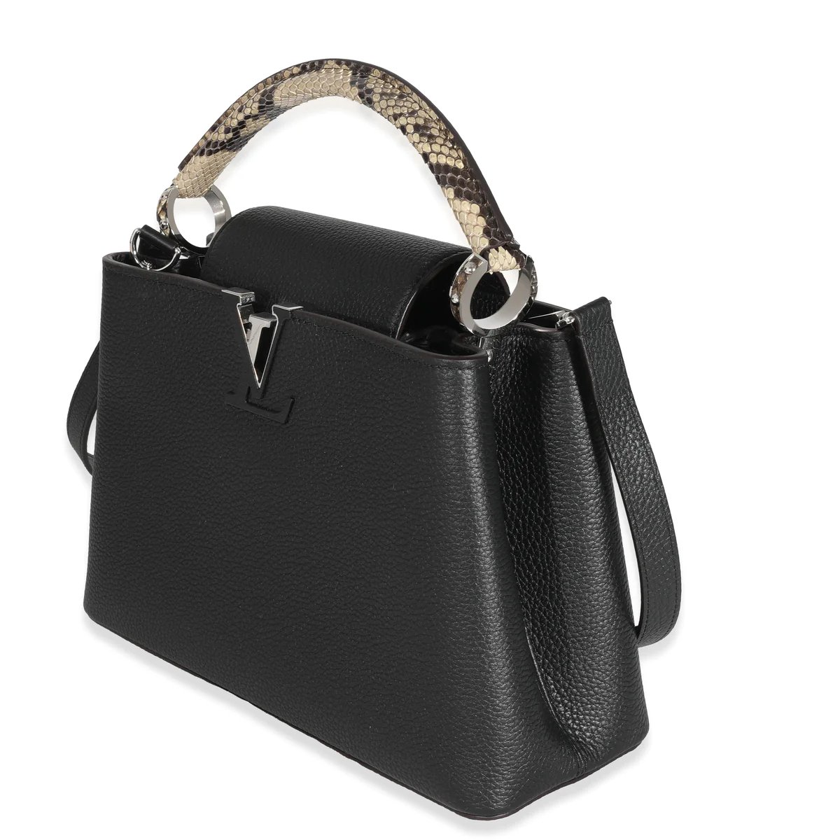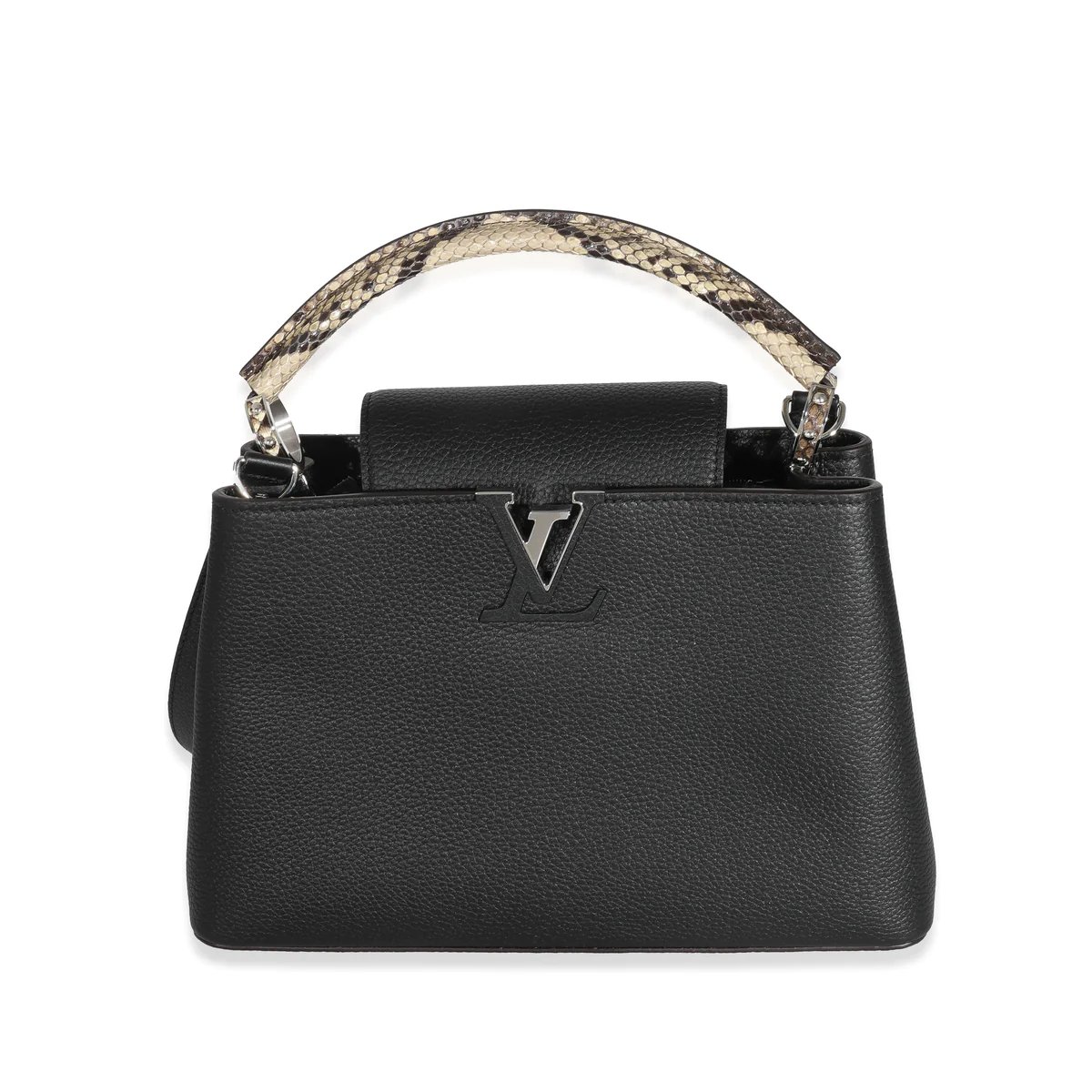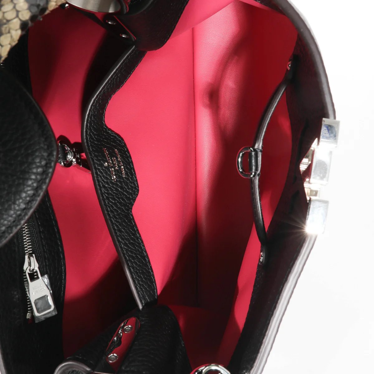 Fashioned from full-grain Taurillon leather, the now-classic Capucines BB handbag displays a host of House signatures: leather-wrapped LV Initials, jewel-like handle mounts inspired by historic trunks, and a distinctive flap with a Monogram Flower motif. Timelessly elegant, this charming model can be carried by hand or worn cross-body on its detachable strap. First launched in 2013, the Capucines is named for the Parisian street where Louis Vuitton first opened shop, in 1854.