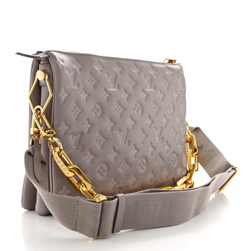 The Louis Vuitton Coussin MM in an elegant Grey – a paragon of luxury and avant-garde style that redefines elegance. This iconic piece, hailing from the house of Louis Vuitton, is designed for the discerning fashionista who values both form and function in their accessories. The Coussin MM is not just a bag; it is a statement, a testament to Louis Vuitton’s unmatched craftsmanship and innovative design.