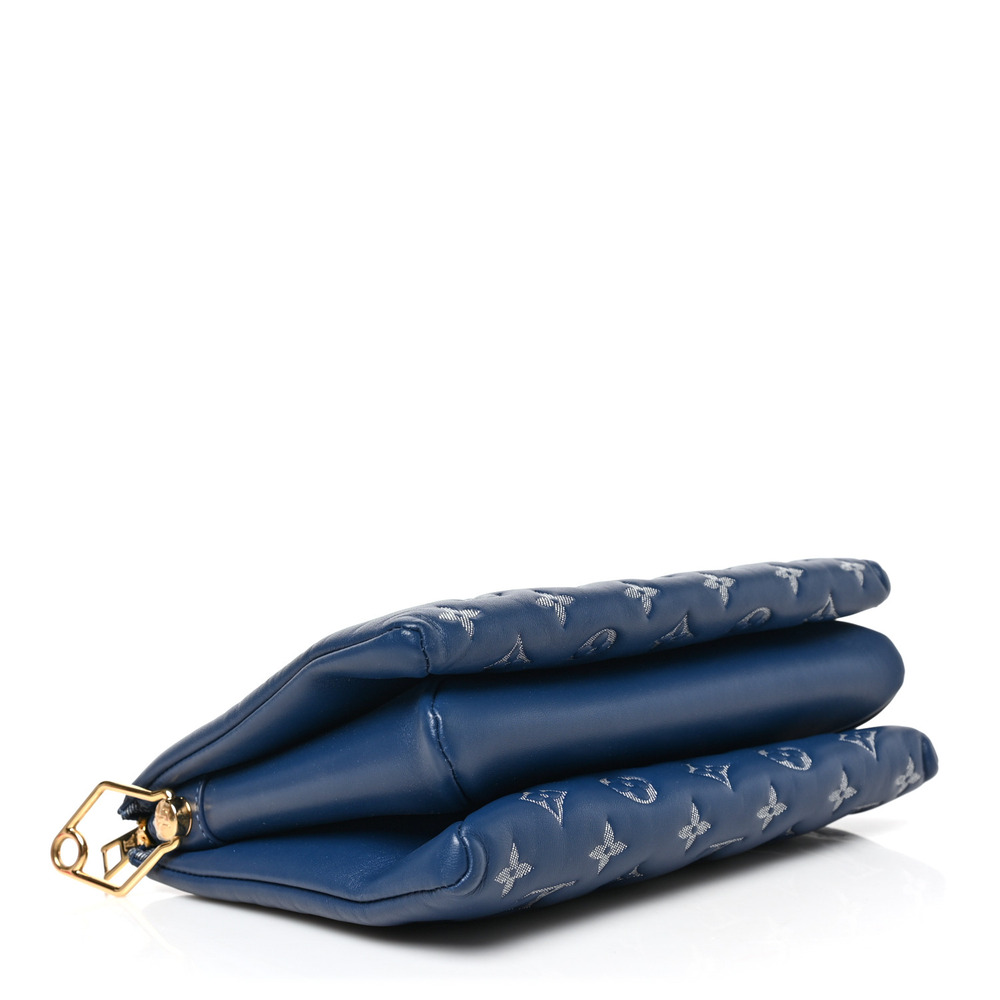 For Spring 2023 the Coussin PM handbag is arrayed in a luminous seasonal colorway. Fashioned from pillowy lambskin embossed with Monogram motifs, this edition will enliven any warm-weather silhouette. The bag?s chunky golden chain is perfect for an over-the-shoulder carry, while the wide textile strap can be styled for cross-body wear.