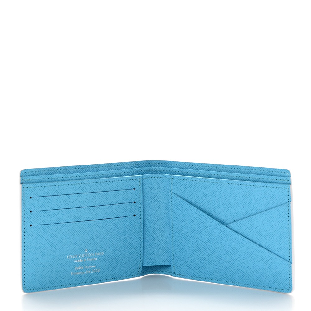 Louis Vuitto NeoNoeam Comics Multiple Wallet in Multicolor. This colorful wallet is made of a coated canvas in white with a multicolor monogram comic design. The holder opens to a blue leather interior with card slots, patch pockets, and a billfold.