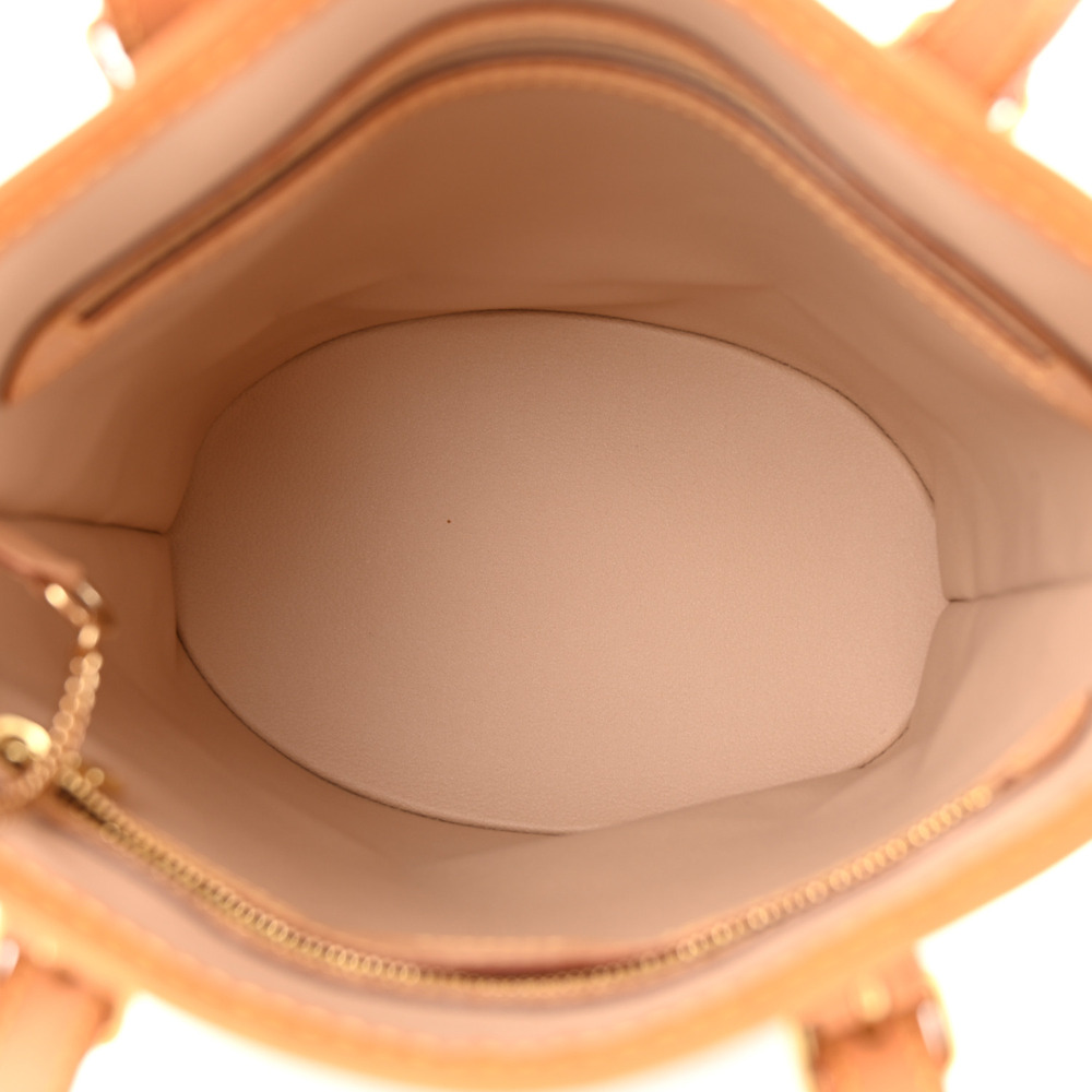 This classic handbag is crafted of a traditional Louis Vuitto NeoNoeam on a toile-coated canvas. The bag features vachetta cowhide leather trim, adjustable strap handles, and polished brass hardware. The top is open to a beige leather-like interior with zipper and flat pockets.