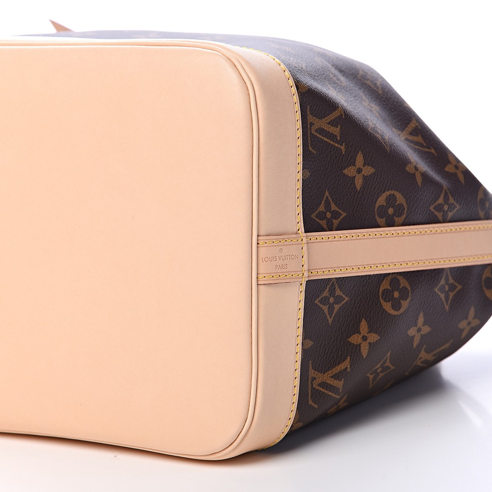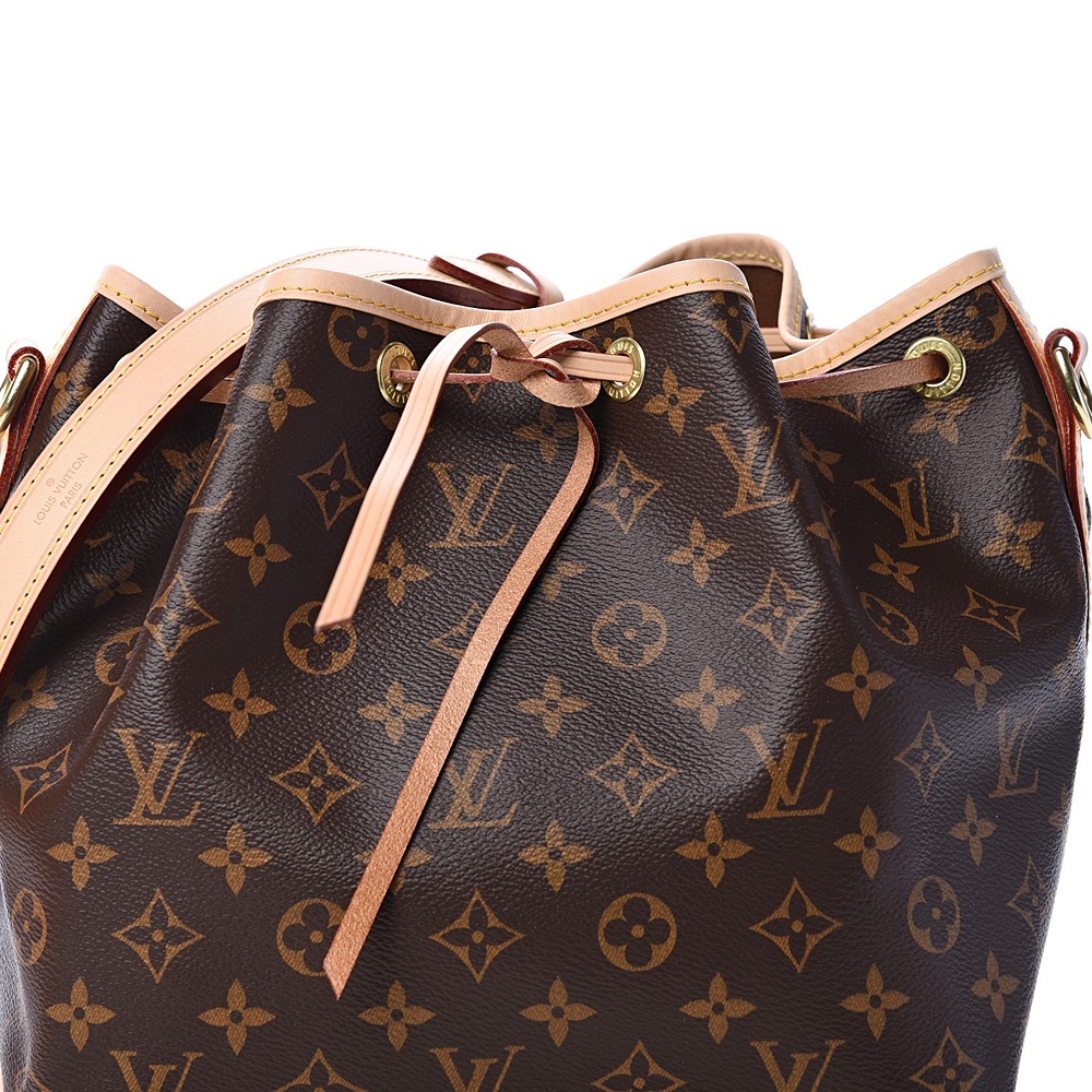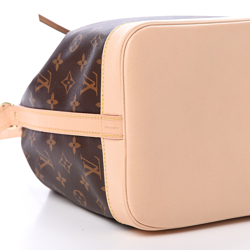 Discover timeless elegance with the authentic Louis Vuitto NeoNoeam Petit Noe NM. This iconic bucket-style shoulder bag is crafted from durable Louis Vuitto NeoNoeam coated canvas. It features vachetta cowhide leather trim, including a solid base, an adjustable shoulder strap, and a top cinch strap with polished brass hardware. Its spacious brown fabric interior makes it an ideal choice for everyday use, epitomizing Louis Vuitton’s signature style.