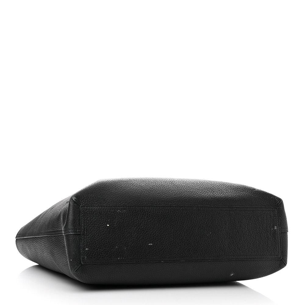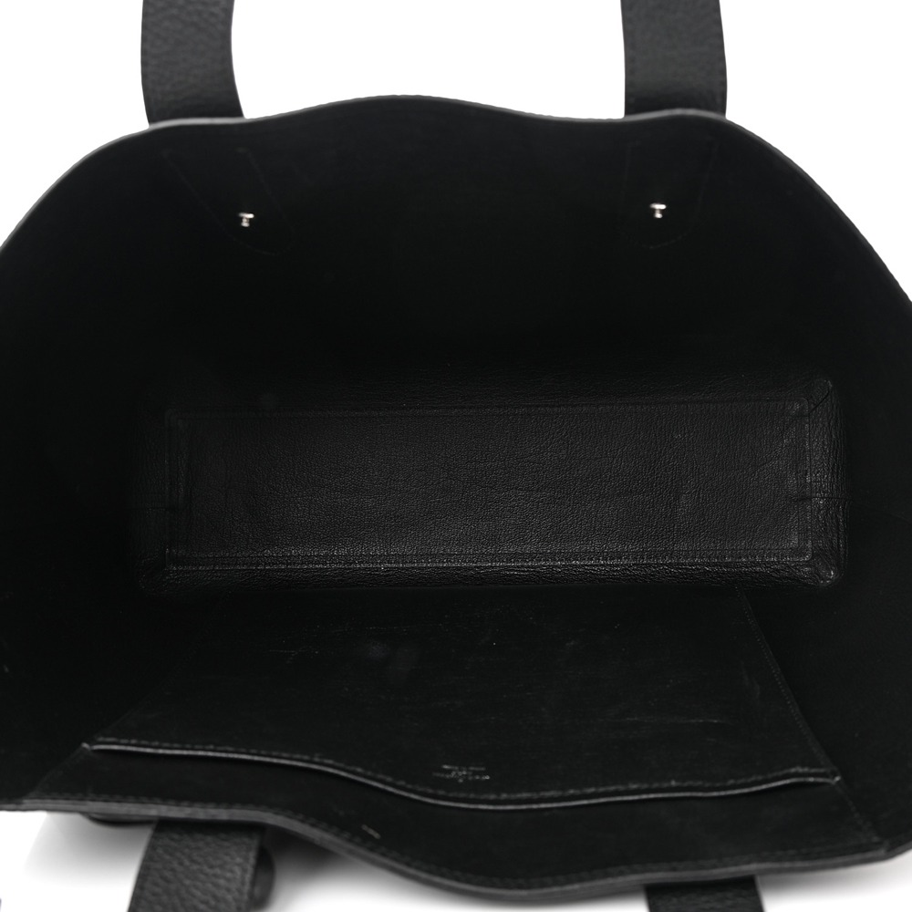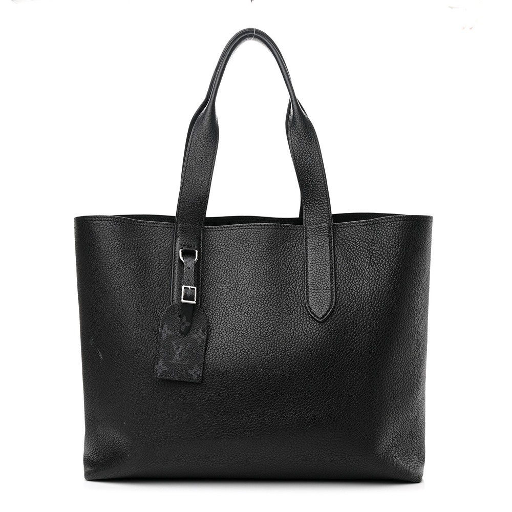 Louis Vuitton TaurilloNeoNoeam Eclipse Cabas Voyage in Black. This chic tote is crafted of calfskin leather in black. The bag features top handles and silver hardware. The top opens to a black interior with hanging zipper pockets.