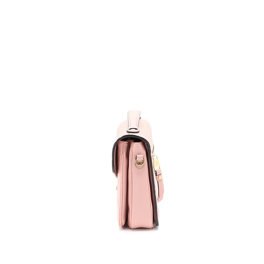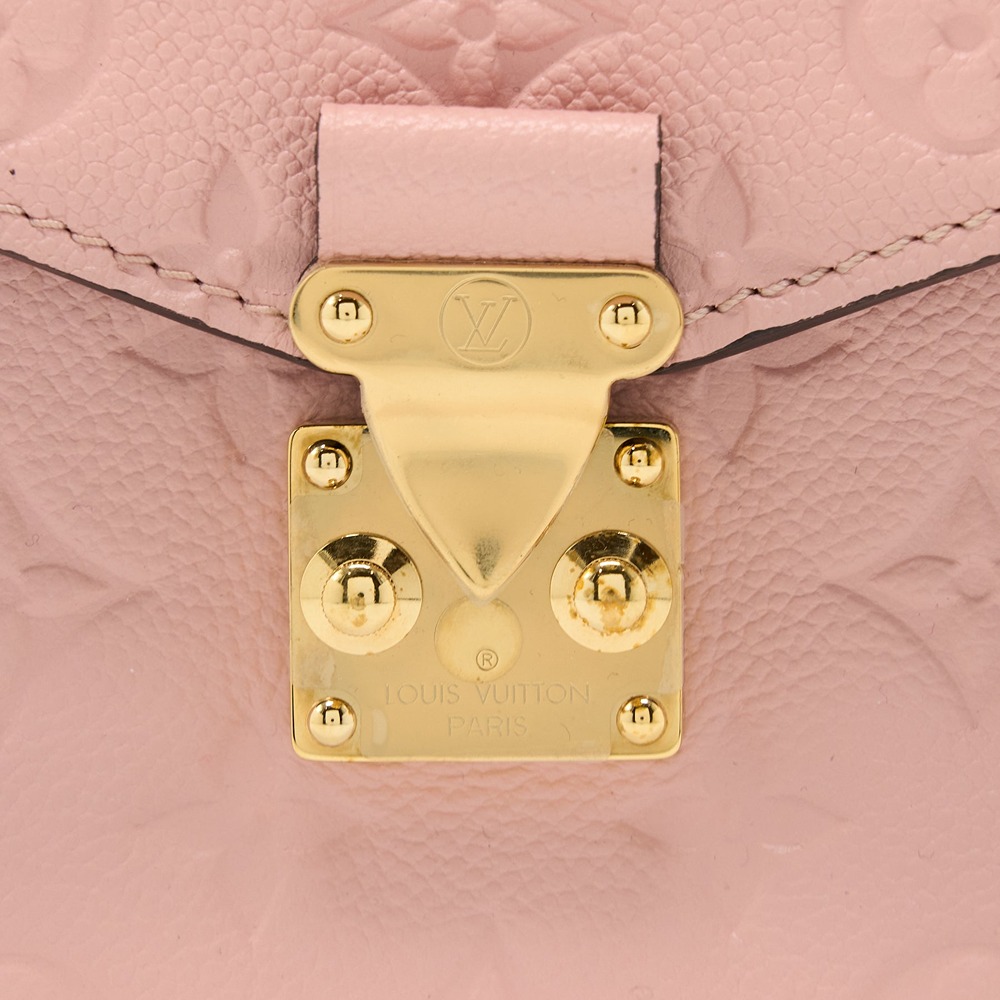 The Pochette Metis handbag, with its classic satchel silhouette, looks luminous in pink-color Monogram Empreinte leather with a matching microfiber lining. The discreet Monogram pattern embossed into the leather and the gold-color hardware, including the S-lock closure, give a modern elegance to this distinctive bag.