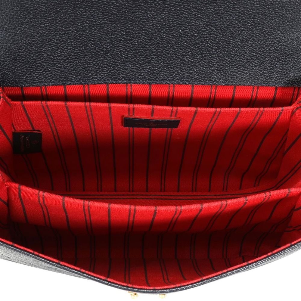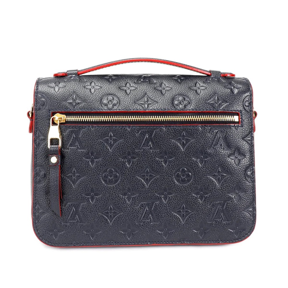 The Pochette Metis MM handbag is fashioned from supple Monogram Empreinte cowhide leather, embossed with a Giant Monogram pattern. The exquisite gold-color S-lock features a delicately embossed LV Circle signature as well as an embossed ?Louis Vuitton Paris? surrounded by four golden rivets. It has an outside zipped pocket and three inside compartments.