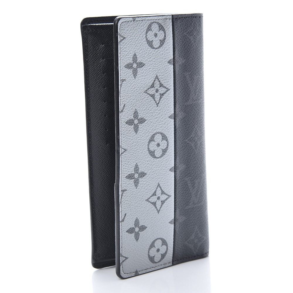 Louis Vuitto NeoNoeam Eclipse Split Organizer. This sleek organizer is made of a Louis Vuitto NeoNoeam coated canvas in gray and black. The flap opens to a black leather interior with credit card slots, zipper and patch pockets and extra slots for all your necessities. This is a chic card holder with the luxury and style of Louis Vuitton!