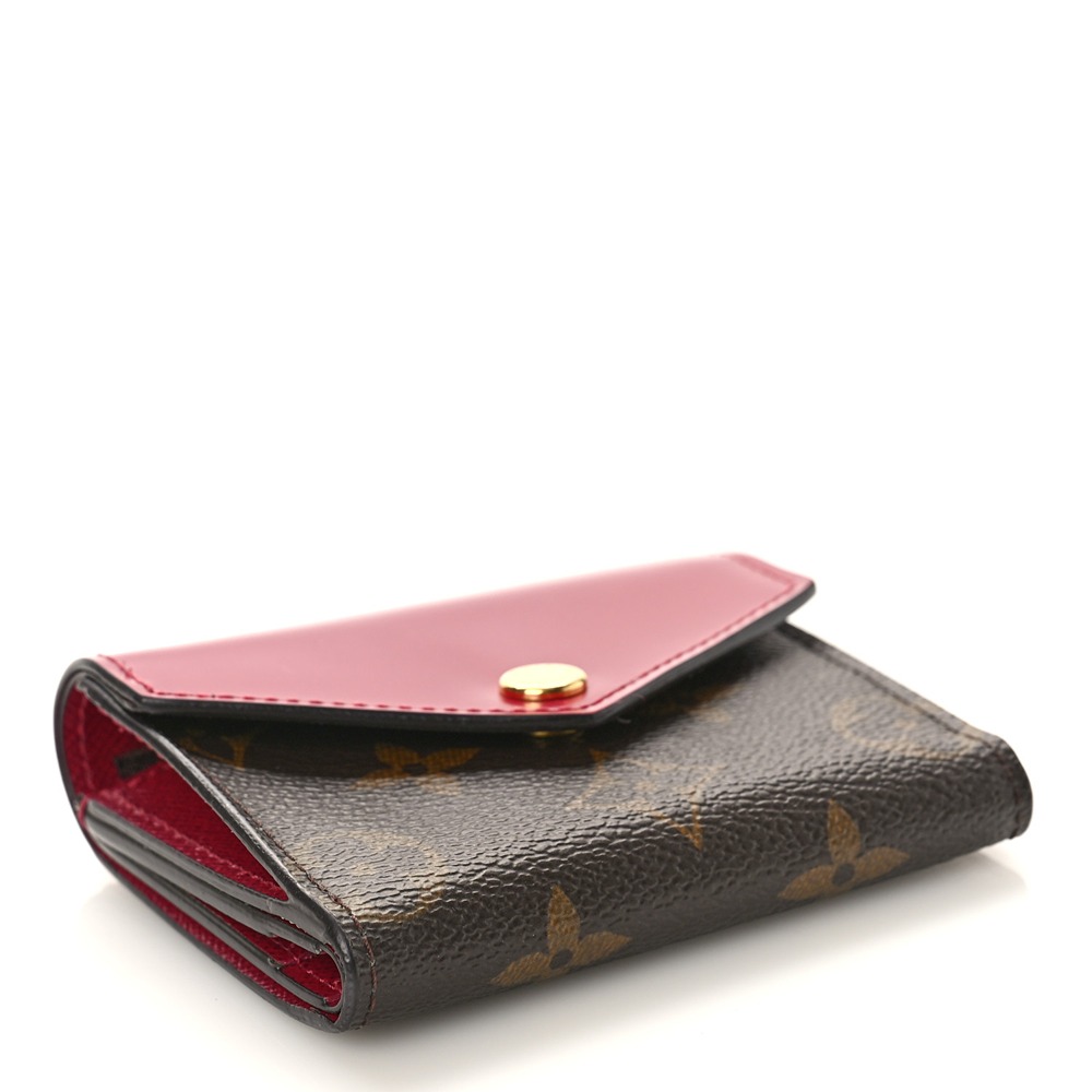 The Zo?? wallet is the perfect mini companion: small enough to fit into even a tiny bag or clutch, yet spacious enough to hold coins, notes and credit cards. Its appeal is enhanced by its stylish combination of Monogram canvas and colored leather, finished off with a gold-tone Louis Vuitton press-stud.