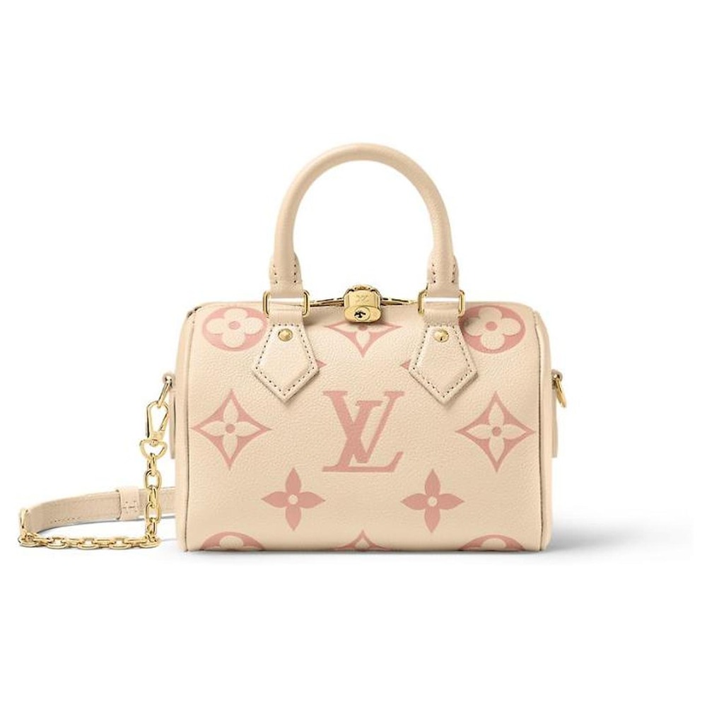 The epitome of luxury and sophistication – the Louis Vuitton Damier Beige Speedy Bandouliere 25 in a stunning Beige & Pink colorway. A marvel of design and craftsmanship, this iconic handbag redefines elegance and sets a new standard for fashion-forward accessorizing.