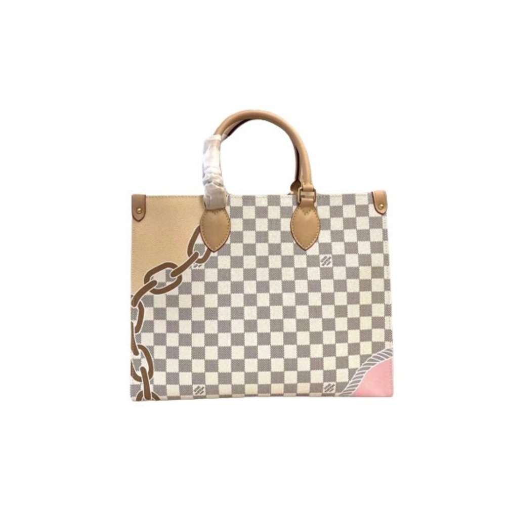 The Speedy Bandouliere 25 handbag gets a summery makeover in Damier Azur canvas decorated with a bold nautical print. The 5-color serigraphy of chains and ropes with golden highlights brings a distinct resort feel to the bag. Two rolled-leather top handles and a removable and adjustable strap give carry options.