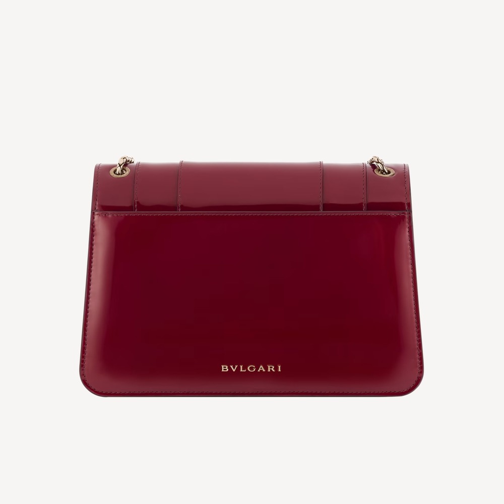 Renewing its timeless appeal with exquisite colours, the Serpenti Forever small crossbody bag is crafted in primrose quartz pink calf leather. Endowed with a snake body-shaped chain strap, the creation is topped by the iconic snakehead magnetic closure, whose mesmerising scales and design, draw from the Serpenti jewels of the 60’s. Featuring a single compartment, the model is completed by a mirror pocket with customisable mirror and the BULGARI metal logo on the back. 20 x 15 x 4.5 cm – 7.9 x 5.9 x 1.8 inches. Made in Italy.