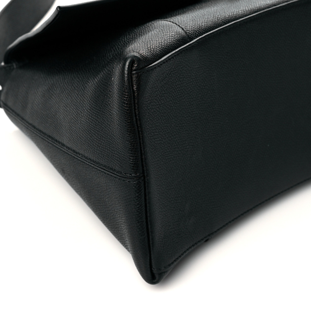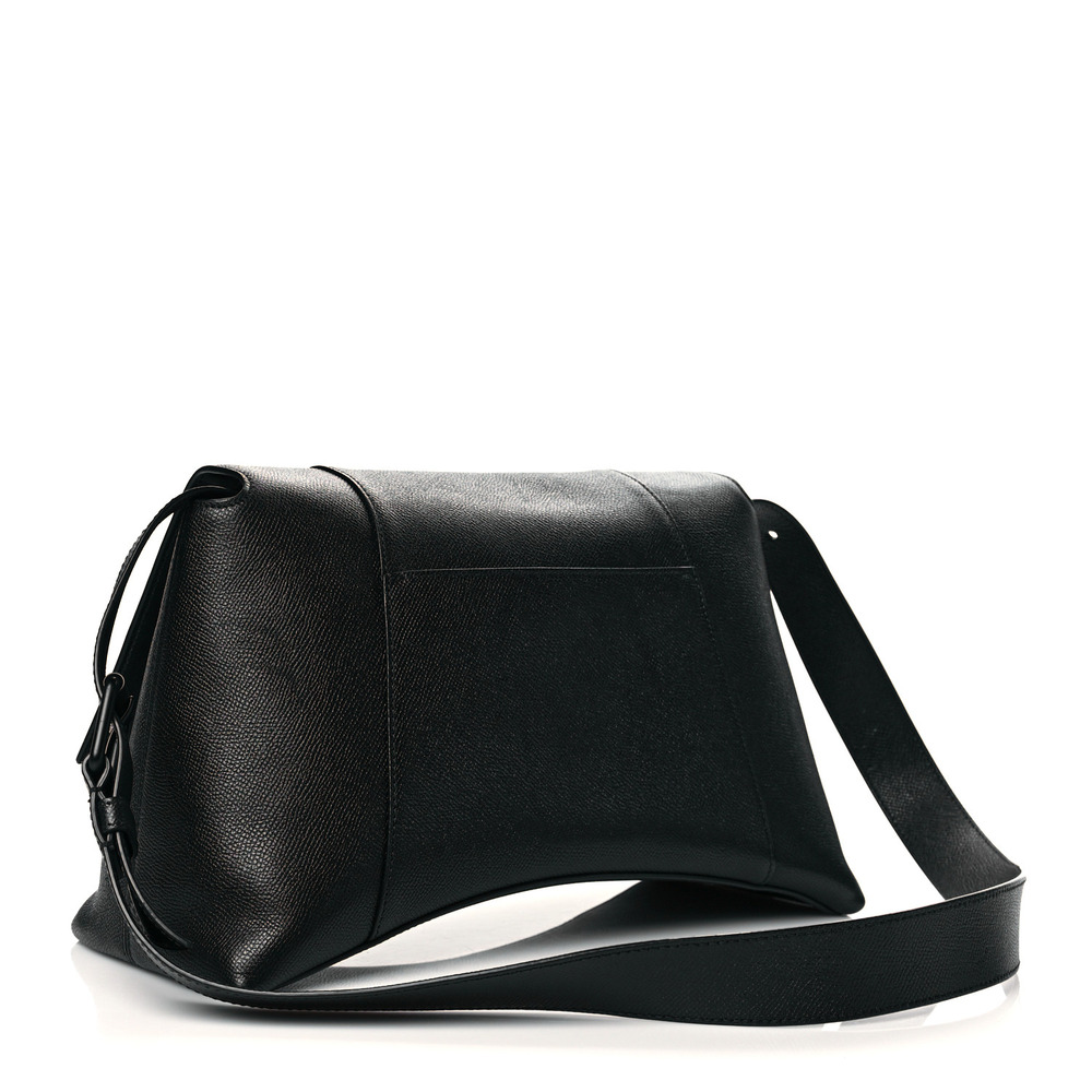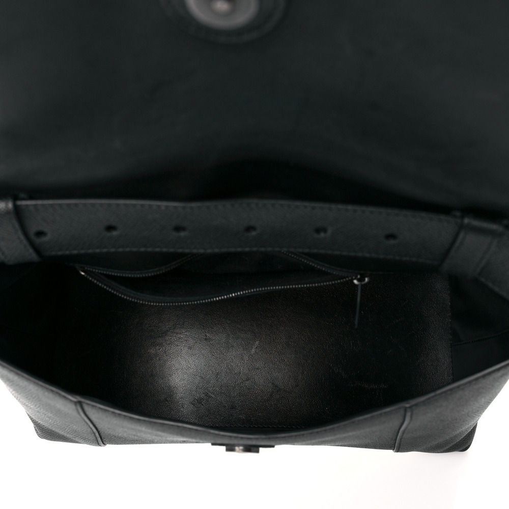 This stylish petite handbag is beautifully crafted of crocodile stamped glazed calfskin in black. It features a matching optional shoulder strap. This bag also features the signature Balenciaga B charm, matte black hardware, and a slip pocket at back. The front flap opens to a black leather interior with a zipper pocket.