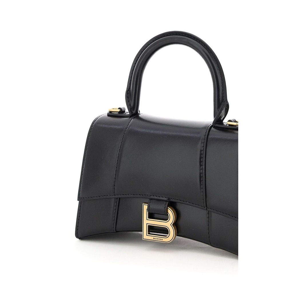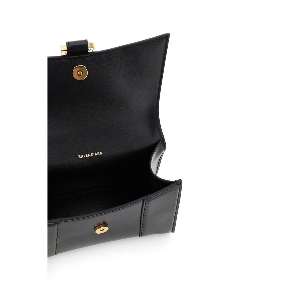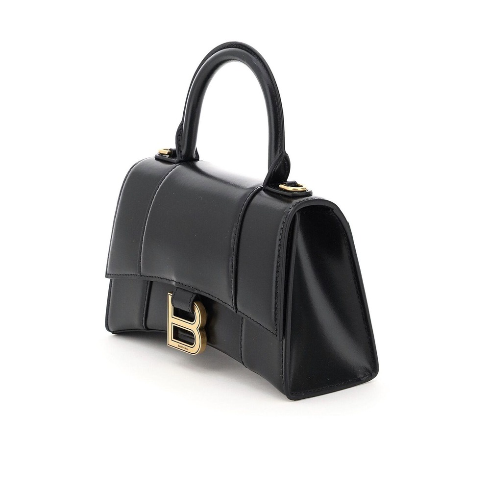 This petite handbag is crafted of crocodile stamped glazed calfskin in black. It features a top handle and an optional shoulder strap. This bag also features the signature Balenciaga B charm, aged gold hardware, and slip pocket at back. The front flap opens to a black leather interior.