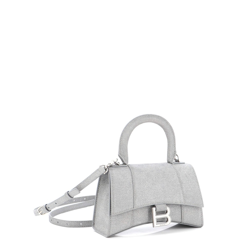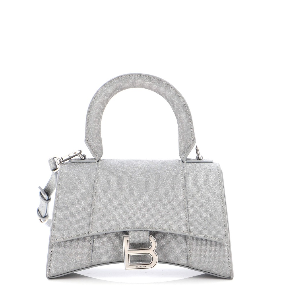 Presenting this Balenciaga Hourglass Top Handle Bag in Glitter Leather XS, featuring professional images of the actual item offered by Rebag.