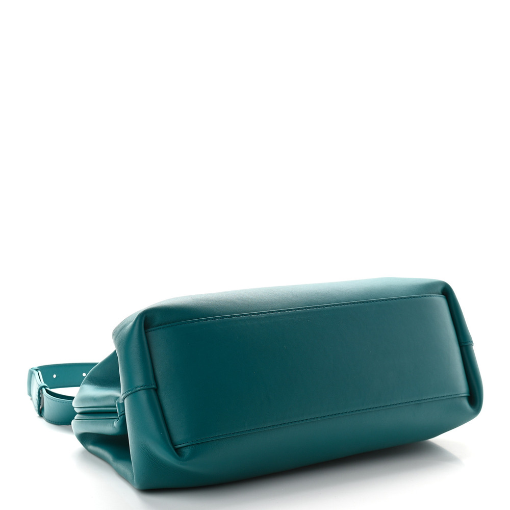 This stylish bag is crafted of calfskin leather in purple. The bag features a triangle handle and a leather shoulder strap. The magnetic closure opens to a matching interior.