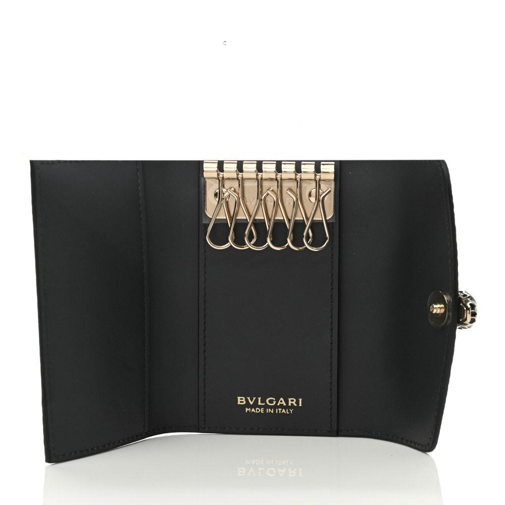 This striking bracelet is crafted of calfskin leather and features an enameled snake head closure. It is an impressive bracelet with the elegant sophistication of Bulgari.
