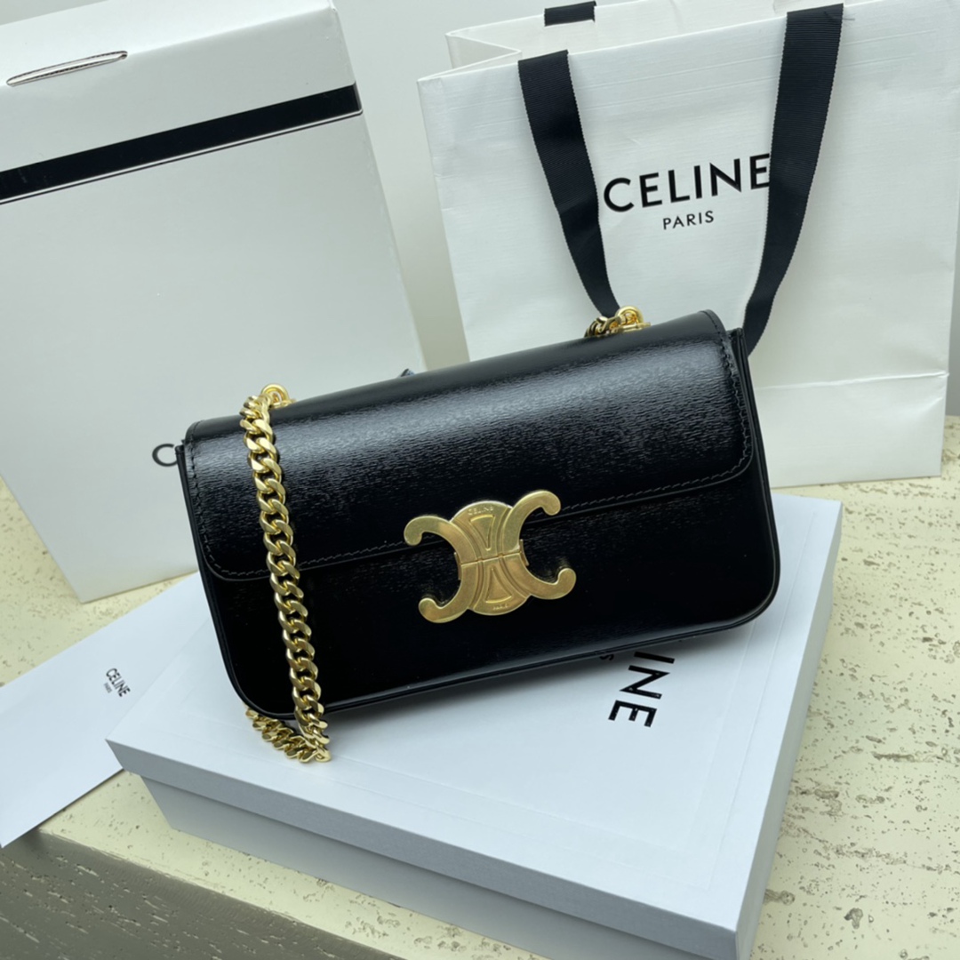 Celine Triomphe Canvas Chain Shoulder Bag Tan