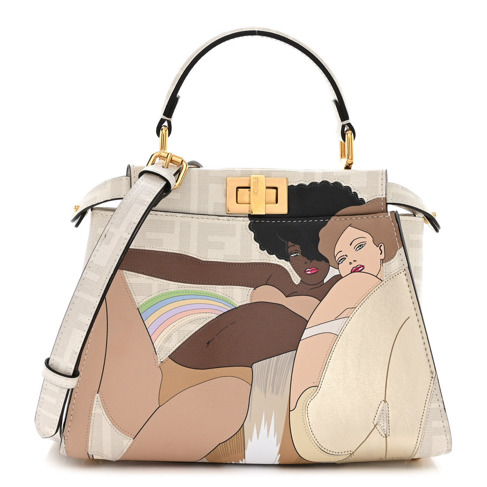 Fendi Bikini Girls Peekaboo Iconic Satchel Bianco Perla