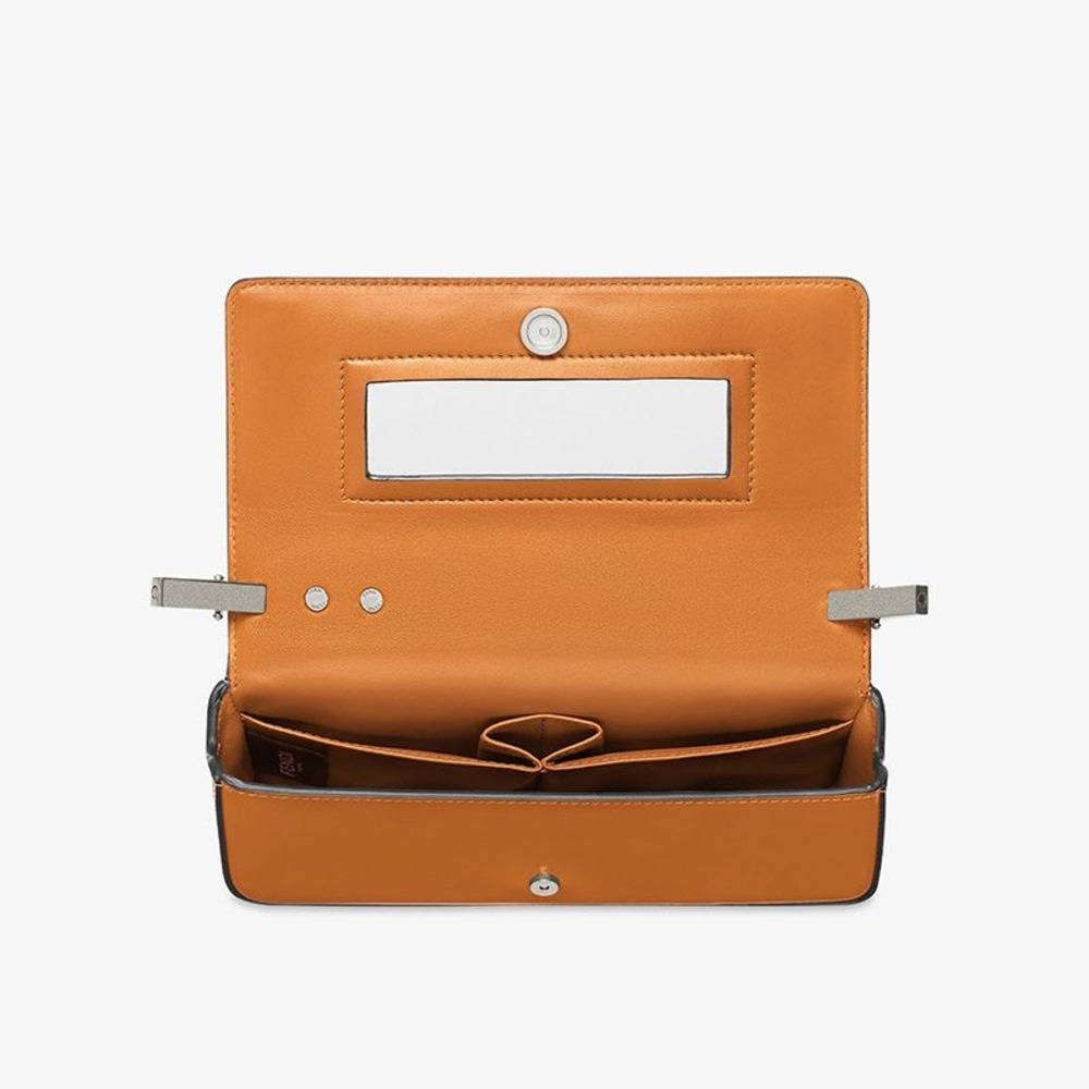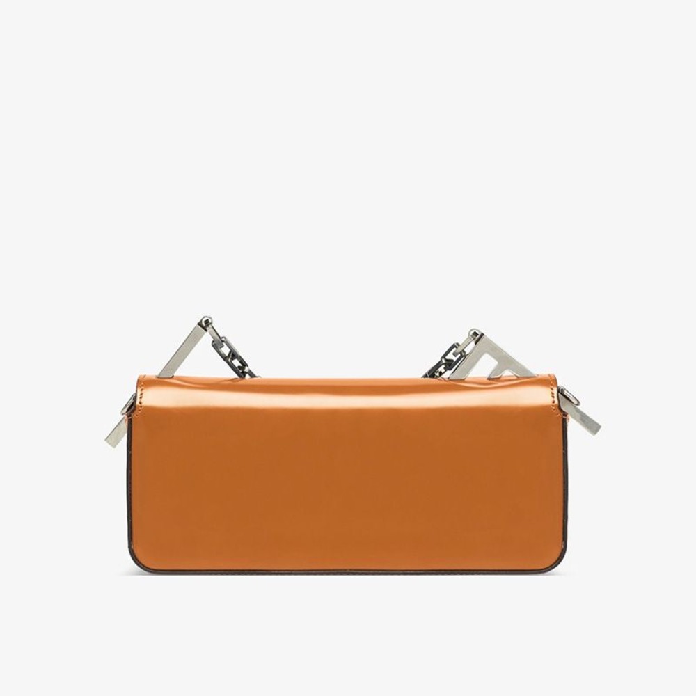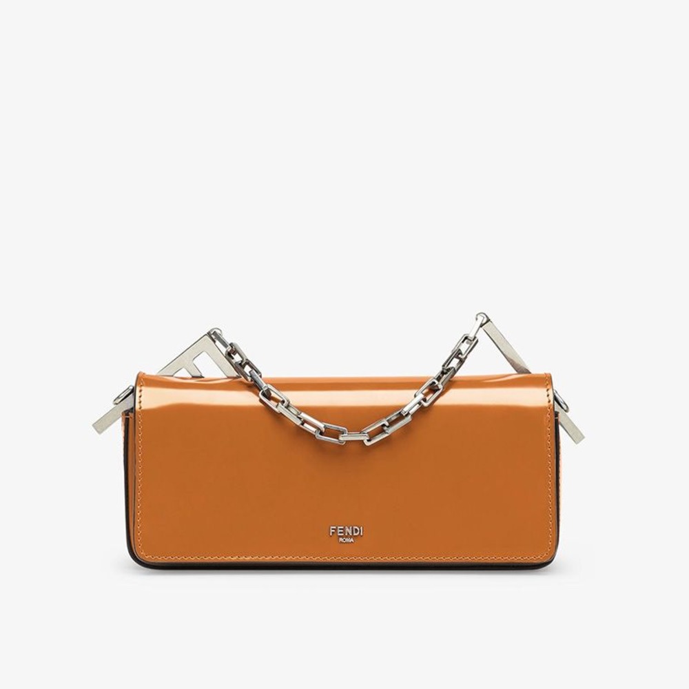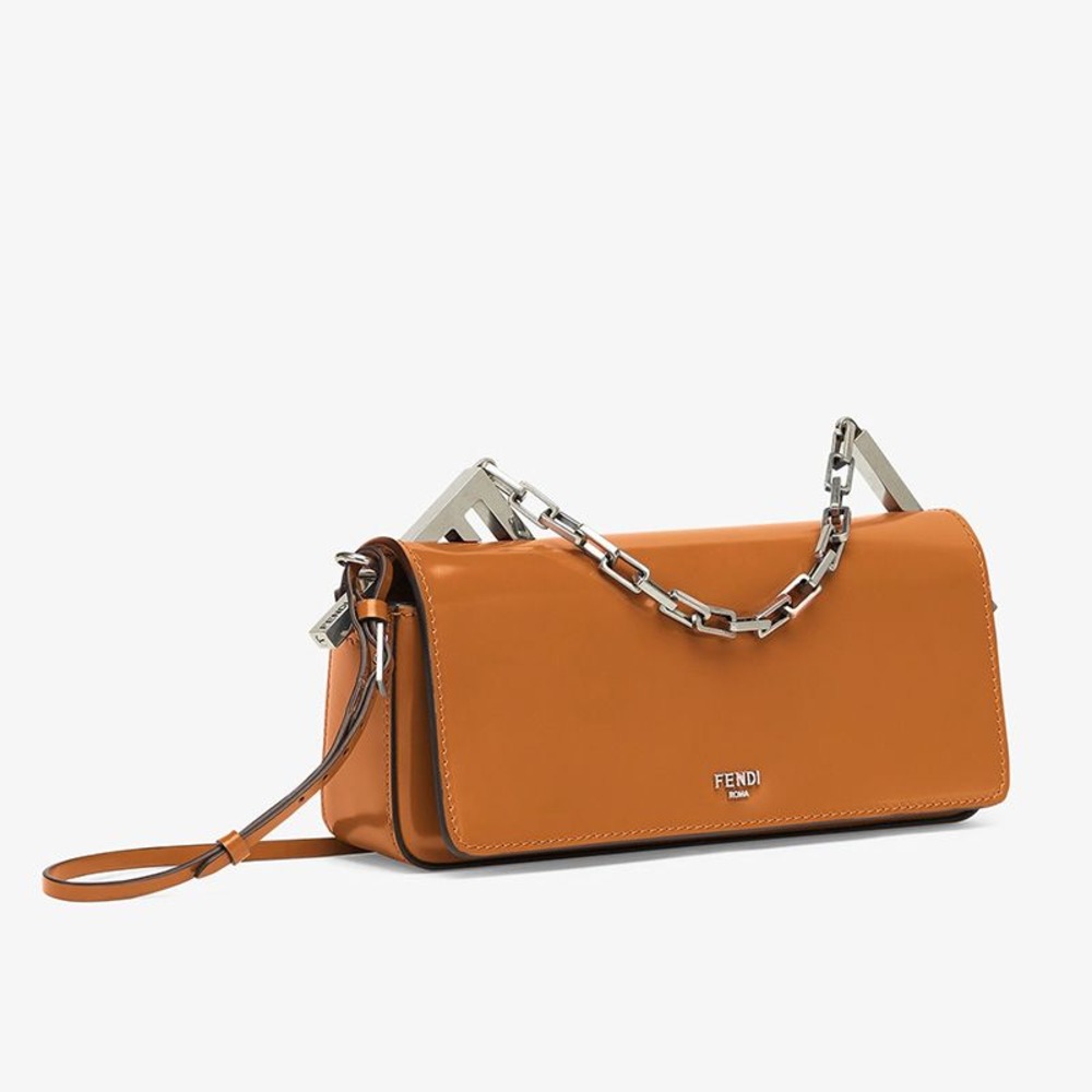 The Fendi First Sight Pouch in Calf Leather Brown embodies luxury and practicality. Crafted from exquisite calf leather, this pouch features stunning brown hues that exude sophistication. Enhanced with palladium-finish metalware, it radiates elegance in every detail. The magnetic clasp closure ensures secure storage, while the interior boasts a handbag mirror, two pockets, and a dedicated lipstick compartment for organized convenience. With one short chain handle and a detachable shoulder strap, it offers versatile carrying options. Compact yet spacious, this pouch is perfectly sized at 23 * 13 * 7 cm, making it an ideal accessory for everyday essentials.