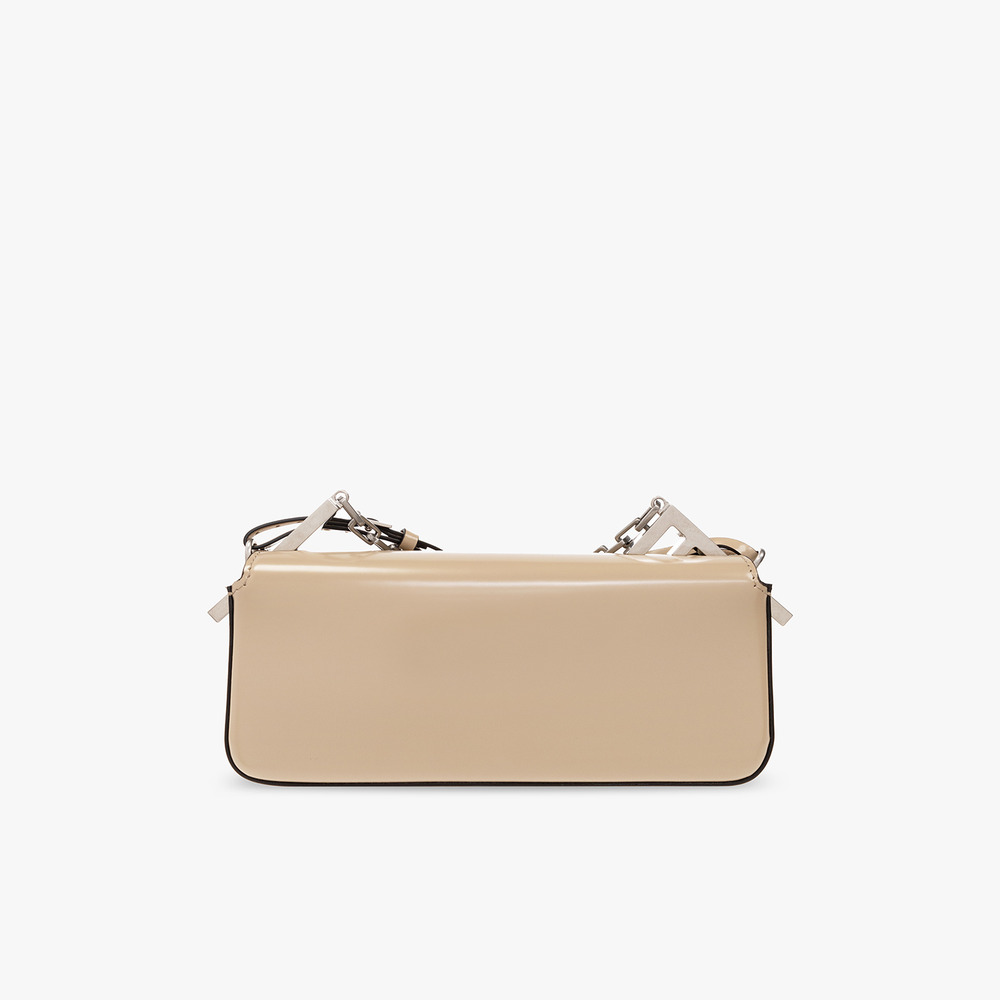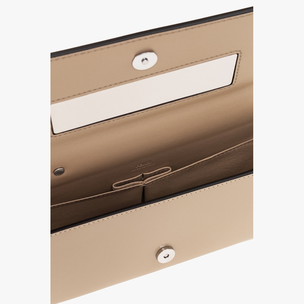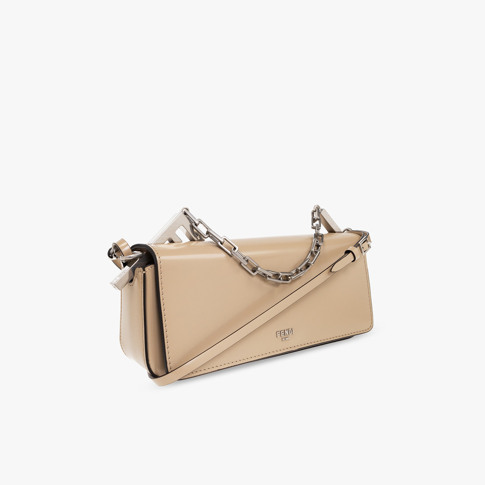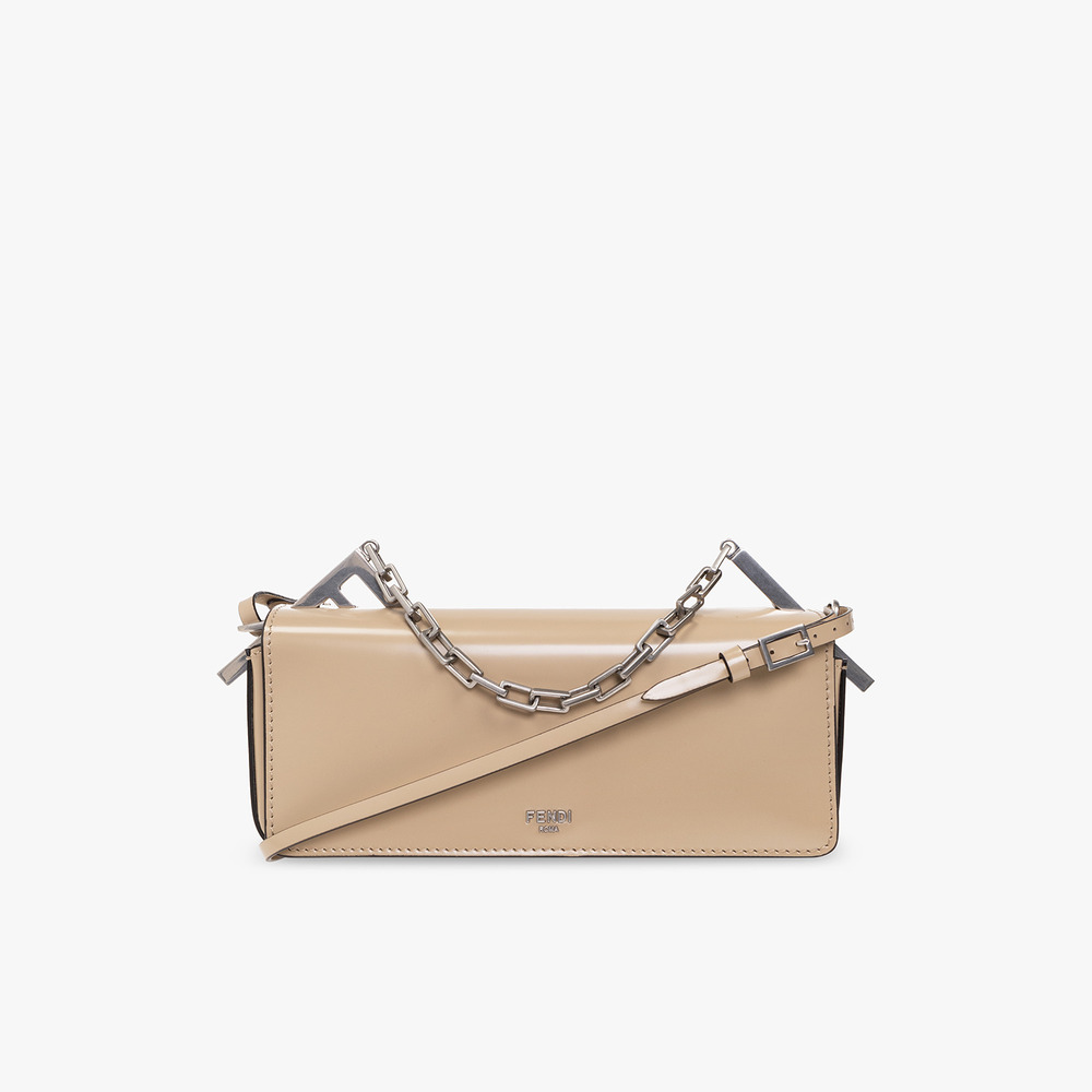 The Fendi First Sight Pouch in Calf Leather Beige embodies luxury and practicality. Crafted from exquisite calf leather, this pouch features stunning brown hues that exude sophistication. Enhanced with palladium-finish metalware, it radiates elegance in every detail. The magnetic clasp closure ensures secure storage, while the interior boasts a handbag mirror, two pockets, and a dedicated lipstick compartment for organized convenience. With one short chain handle and a detachable shoulder strap, it offers versatile carrying options. Compact yet spacious, this pouch is perfectly sized at 23 * 13 * 7 cm, making it an ideal accessory for everyday essentials.