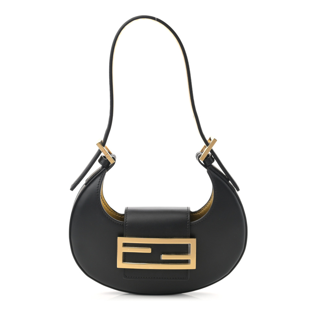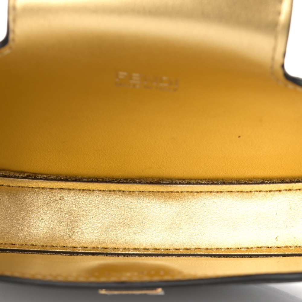 This stylish mini bag is crafted of smooth calfskin leather in light blue. The lining and under strap feature silver leather detail. It features a light blue leather shoulder strap, silver hardware, and a bold Fendi hardware logo overlay flap.