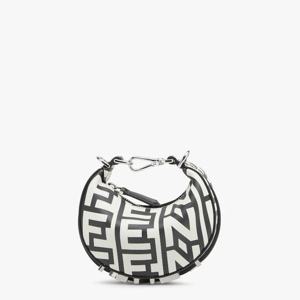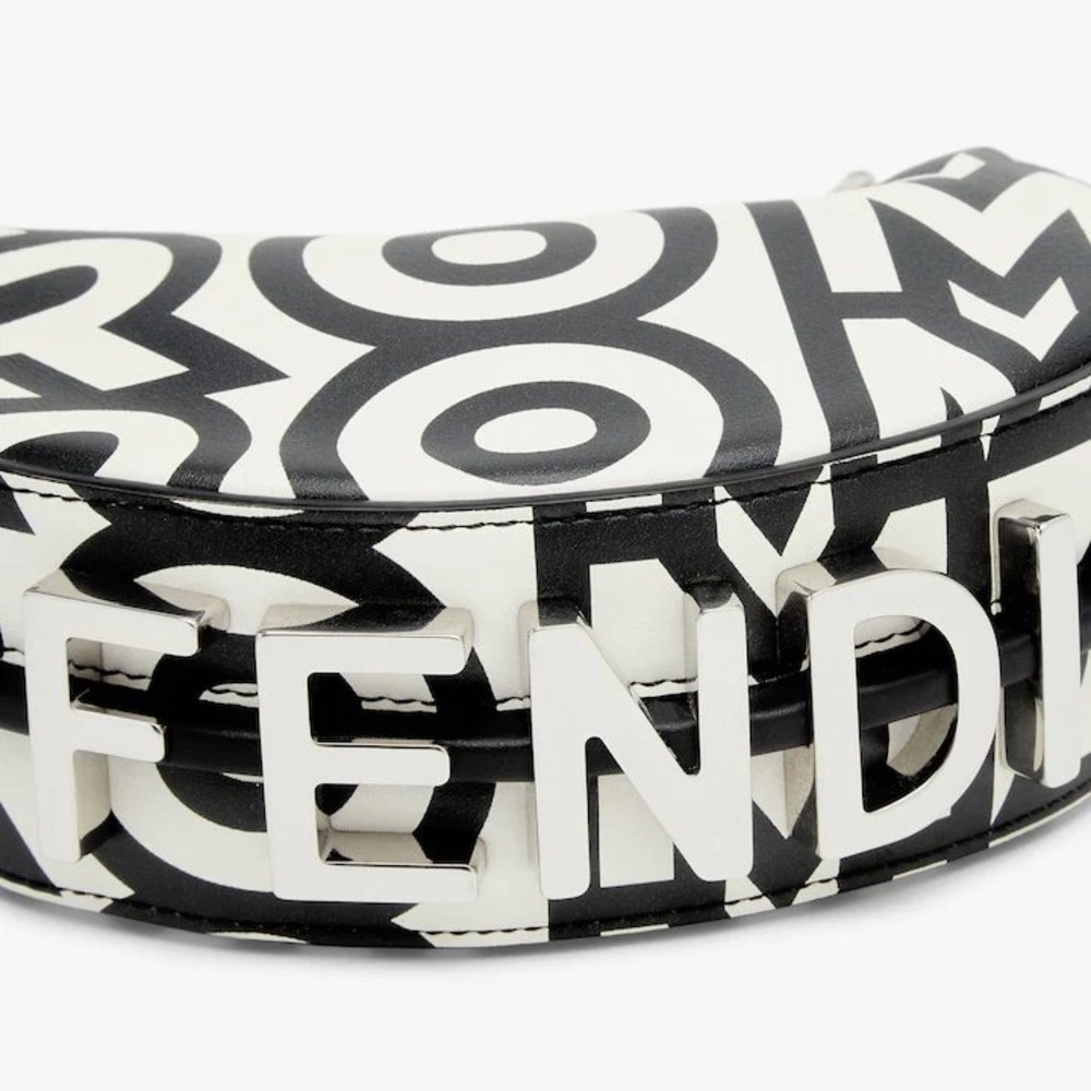 Description:The Fendigraphy Hobo Bag offers a blend of sophistication and functionality. Boasting a zipper closure adorned with silver metal FENDI lettering, this bag exudes luxury. Its adjustable strap, featuring a clip, enables attachment to larger bags or comfortable wrist wear. Additionally, hooks are provided for shoulder strap attachment. Crafted with the iconic jacquard FF fabric and accented with black and white nappa leather details, it achieves a timeless aesthetic. Finished with silver-finish metalware, this bag is a testament to Italian craftsmanship and style.