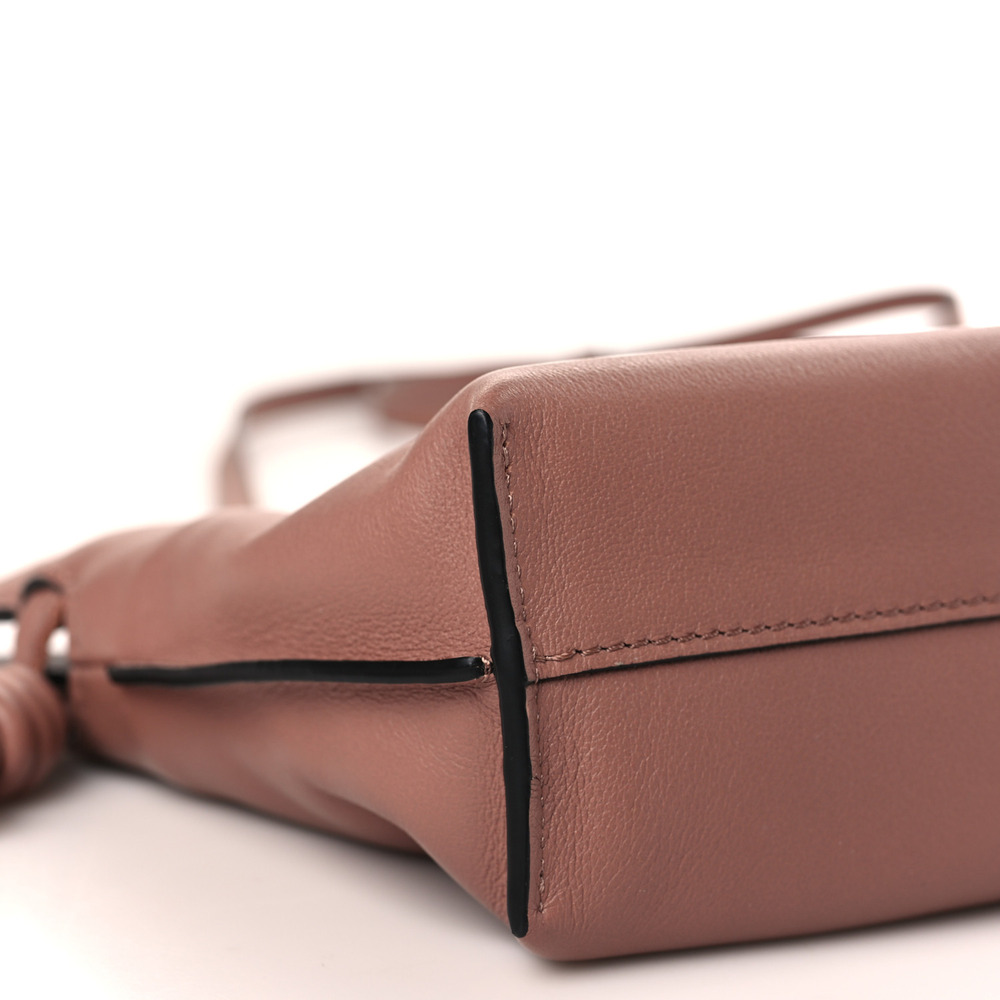 Launched in the 1980s, the Flamenco Clutch cinches closed using drawstring pulls finished in signature coiled knots. This mini version is crafted in nappa calfskin.