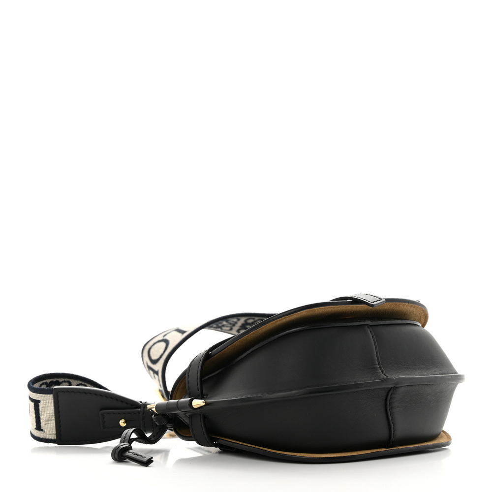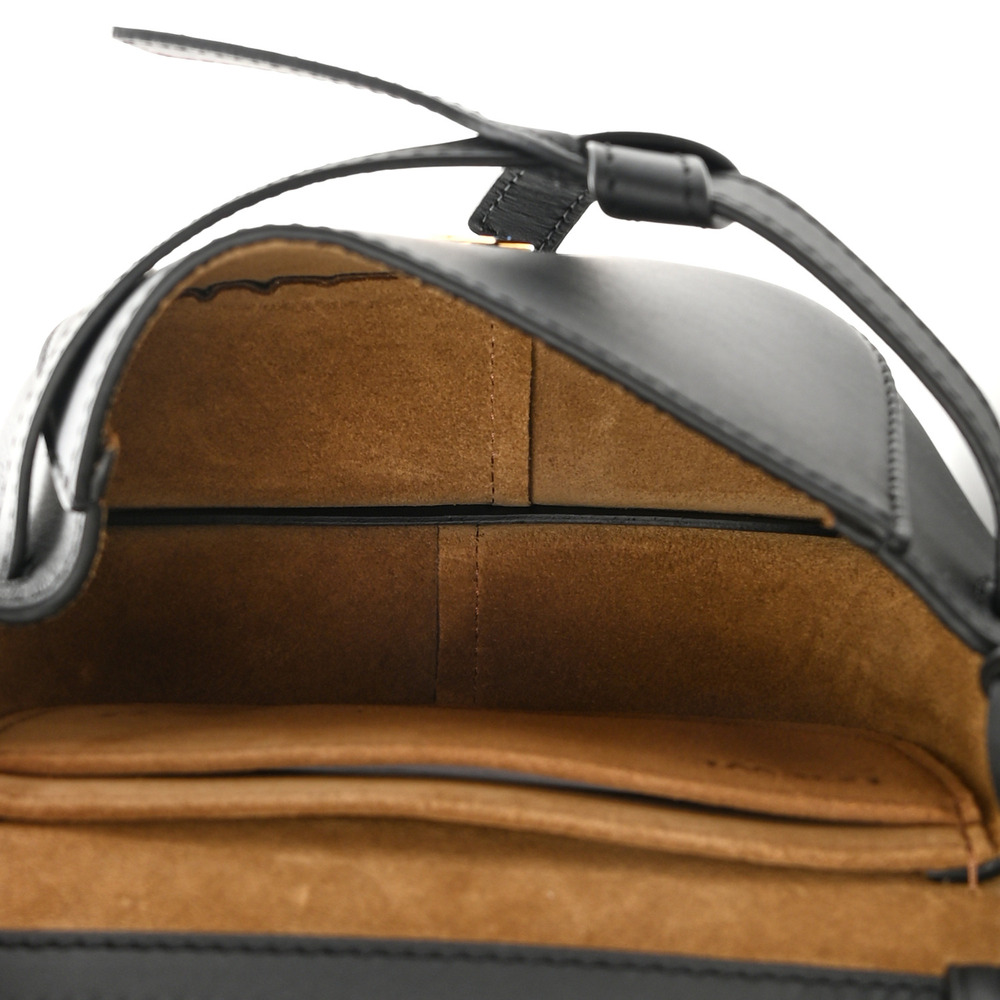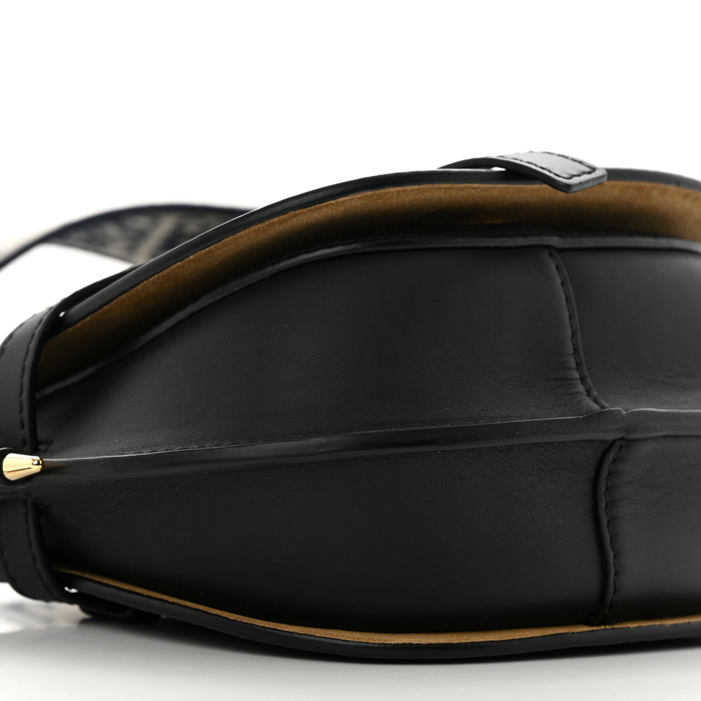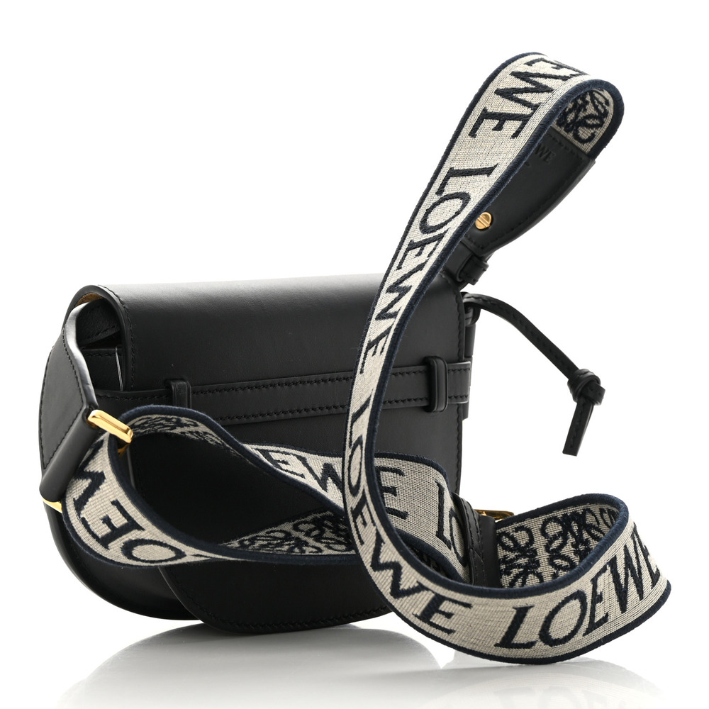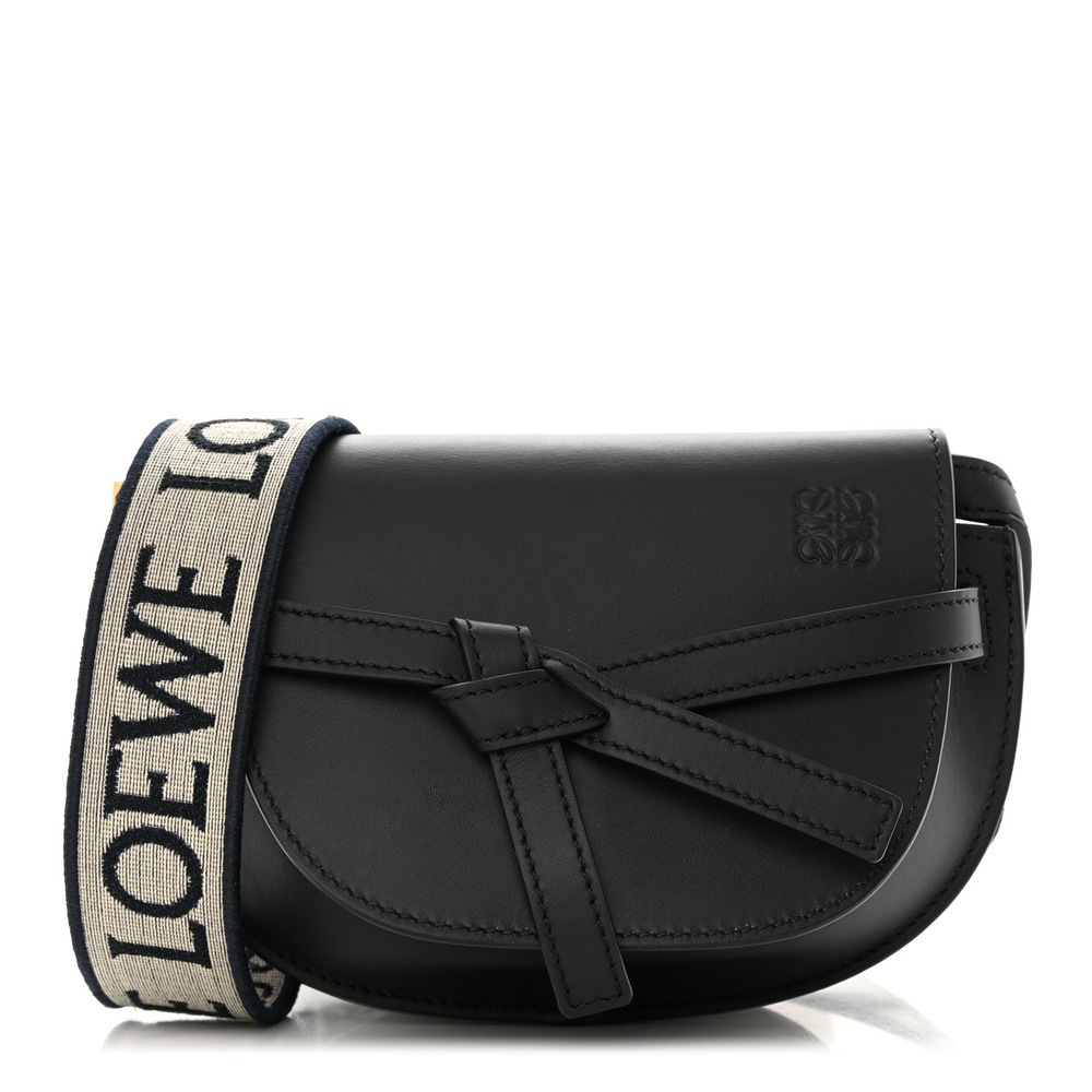 The Gate displays LOEWE’s unrivalled leather craftsmanship with a saddle-stitched knotted leather strap and a side-latched metal pin that gives the bag its name. This small version is crafted in bicolour soft calfskin with a LOEWE jacquard strap.