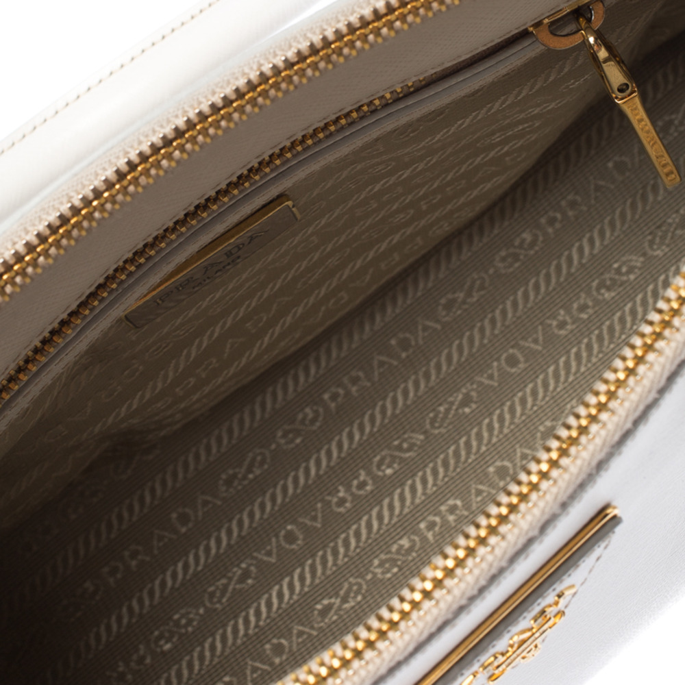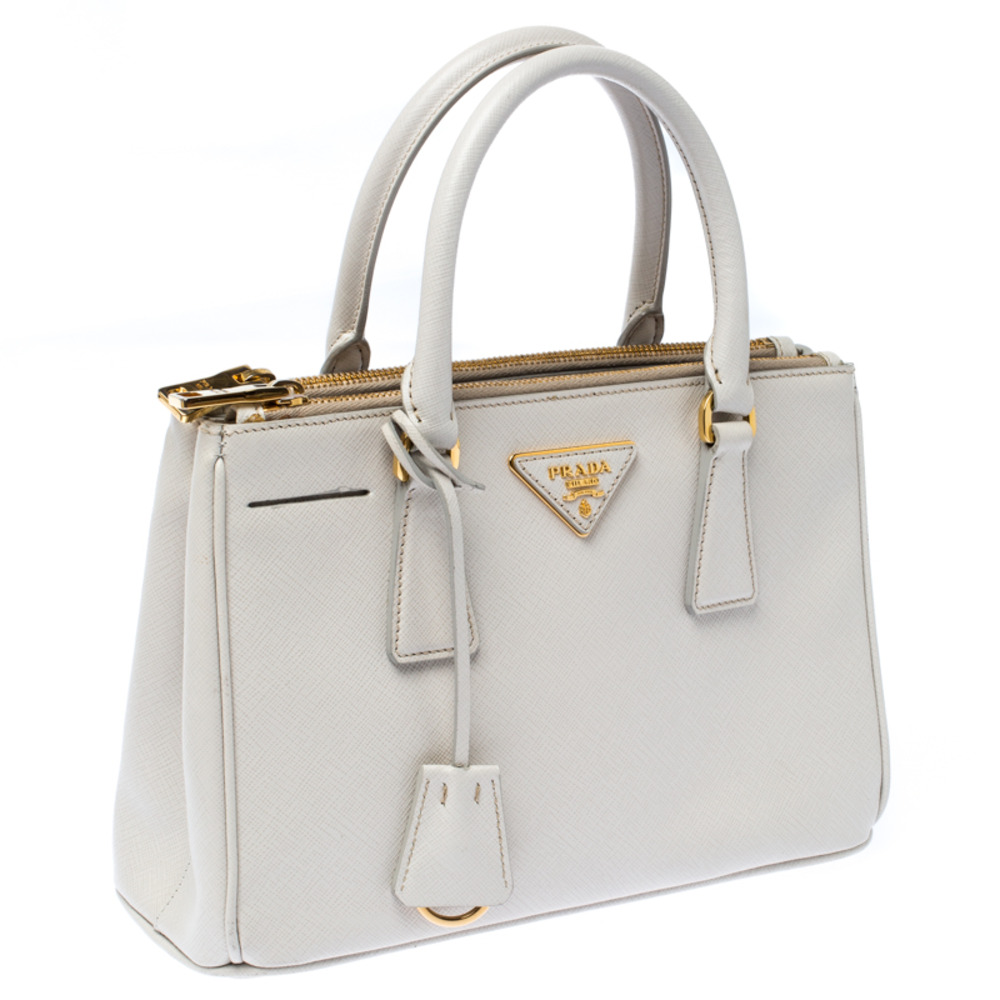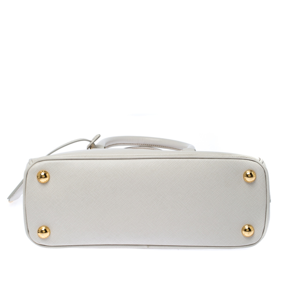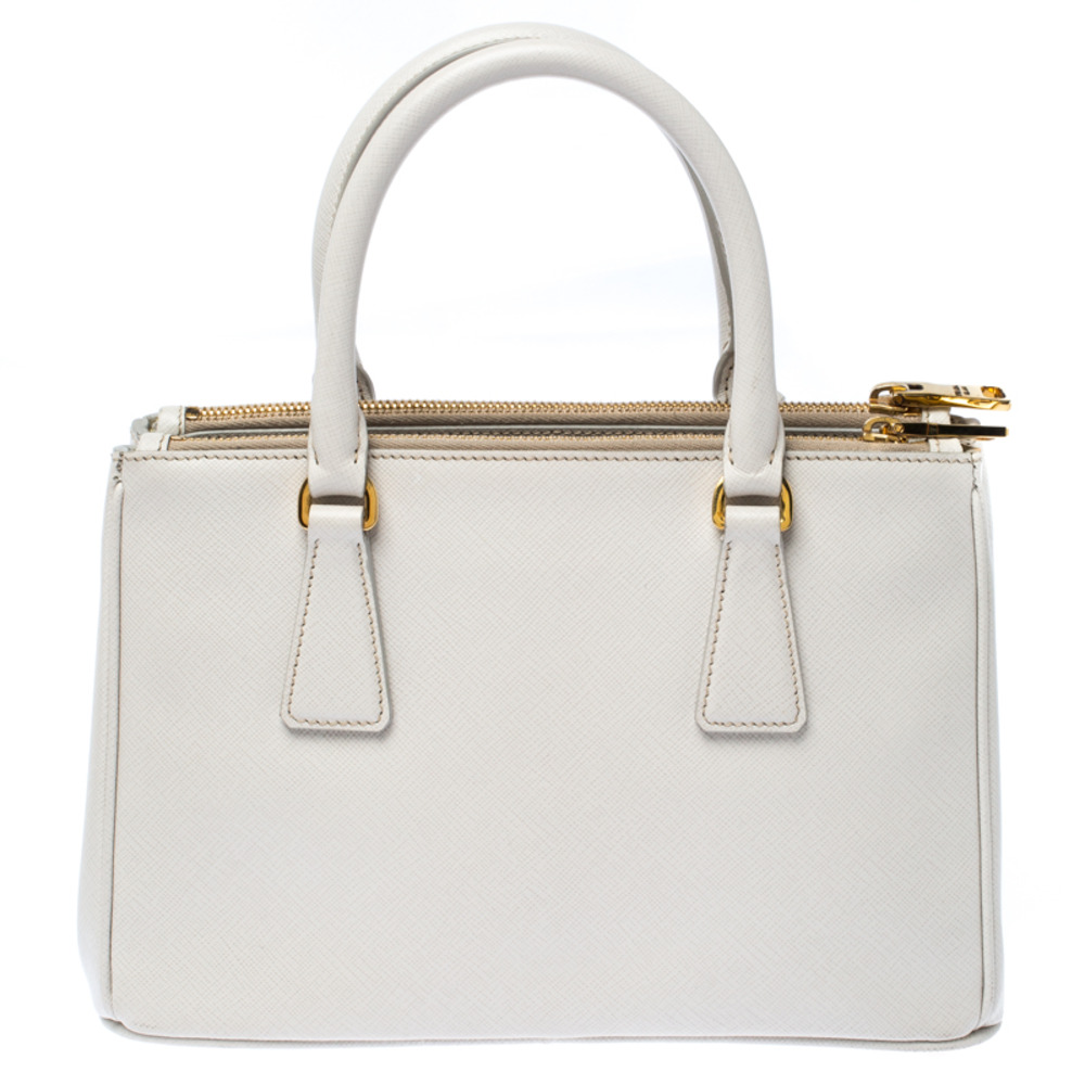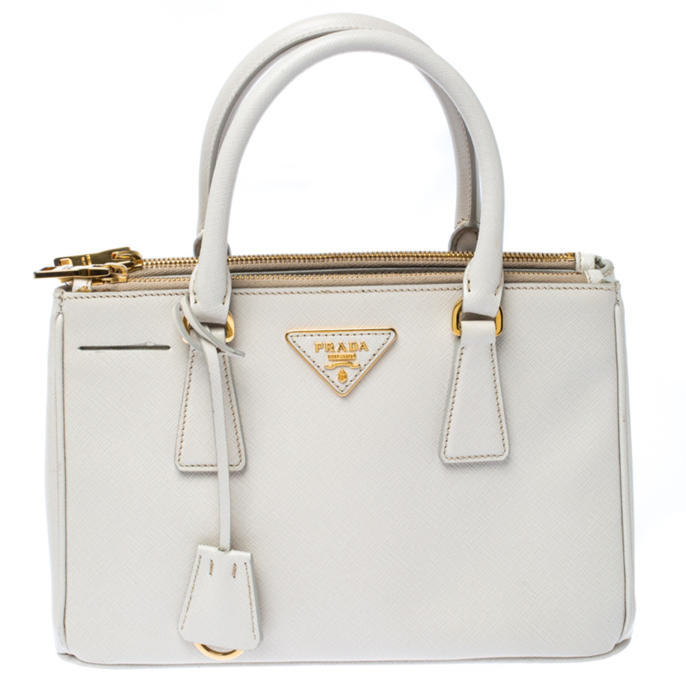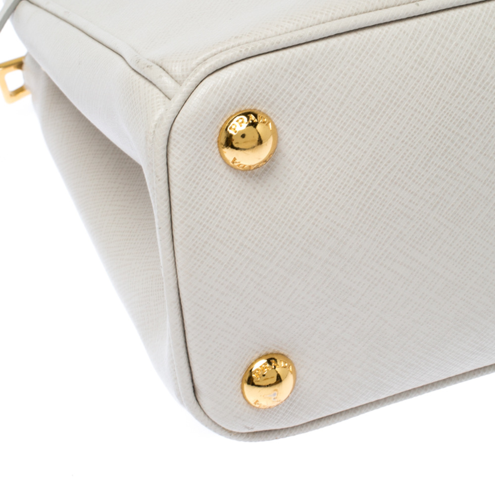 The Prada Galleria bag, which exemplifies Prada’s centennial excellence in luxury leather goods, becomes a reflection of the brand’s modernity and stylistic identity that seeks to interpret kaleidoscopic contemporaneity through a pragmatic design and structured lines. The accessory, presented in the mini version, is made of iconic Saffiano leather that was patented by the founder of the brand and features a crosshatch texture and waxed finish. The Prada Galleria bag, named after the historic Prada store opened by Mario Prada in 1913 in Galleria Vittorio Emanuele II in Milan, expresses the quintessence of the brand’s timeless elegance.