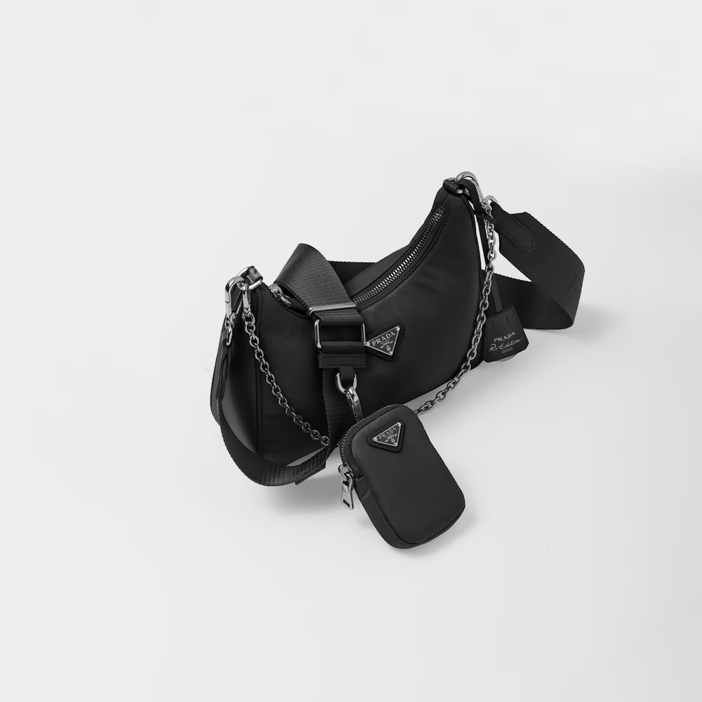 Inspired by the iconic mini hobo bag, the Prada Re-Edition 2005 shoulder bag is made of Re-Nylon: a regenerated nylon yarn (ECONYL?)produced from recycled, purified plastic trash collected in the ocean, fishing nets and textile waste fibers. This versatile bag with Saffiano leather trim comes with a detachable pouch attached to the shoulder strap.