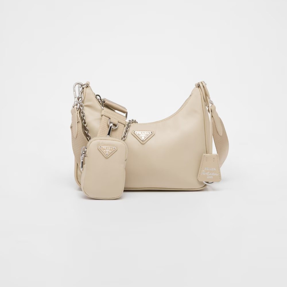 Inspired by the iconic mini hobo bag, the Prada Re-Edition 2005 shoulder bag is made of Re-Nylon: a regenerated nylon yarn (ECONYL?)produced from recycled, purified plastic trash collected in the ocean, fishing nets and textile waste fibers. This versatile bag with Saffiano leather trim comes with a detachable pouch attached to the shoulder strap.