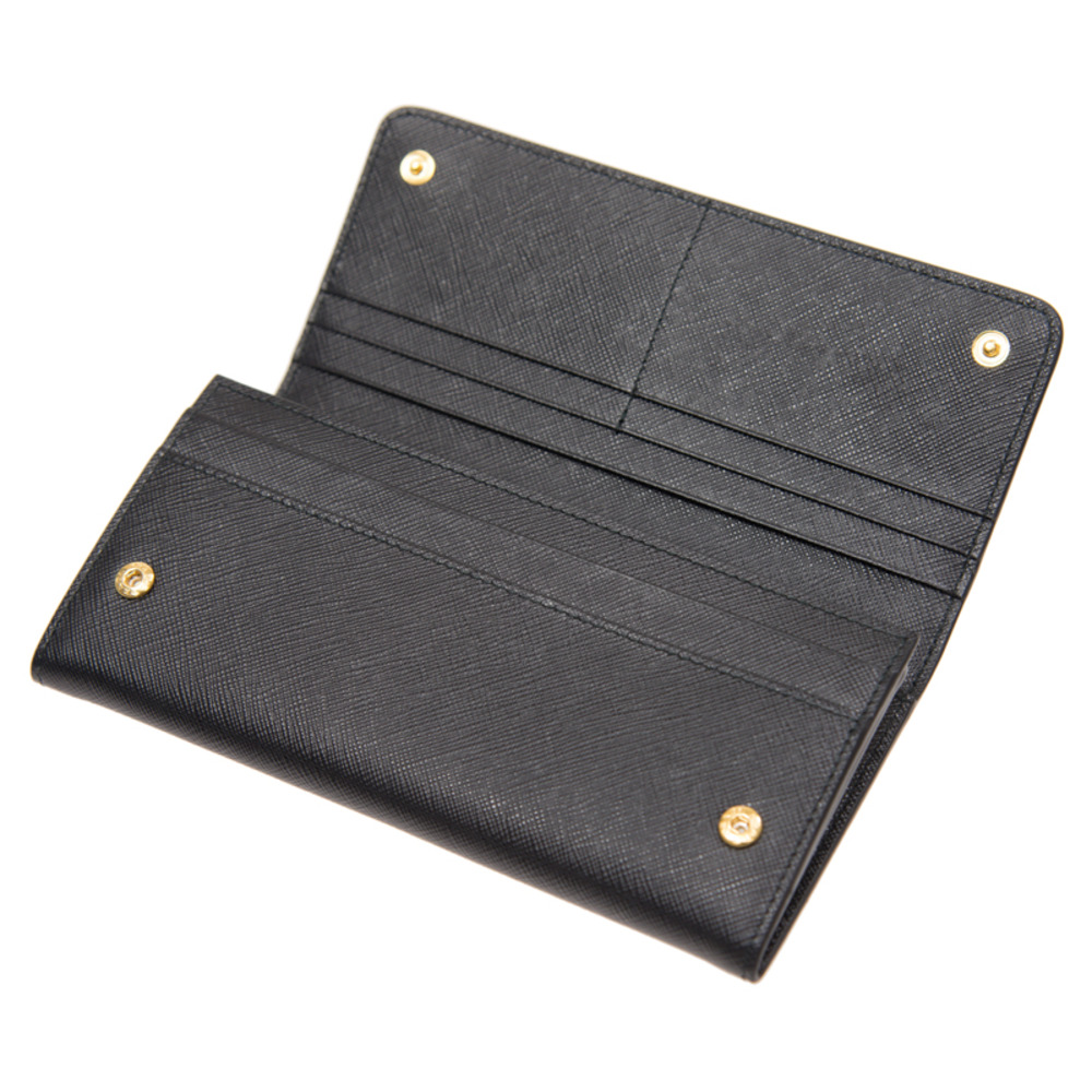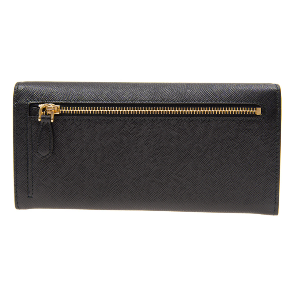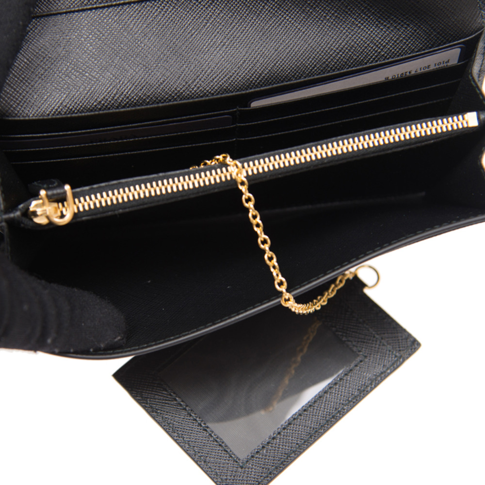 This is a chic wallet that is finely crafted of cross-grain textured saffiano leather in pink. The full front flap unsnaps to a fabric and leather interior of bill slots, card slots and a partition zipper compartment.
