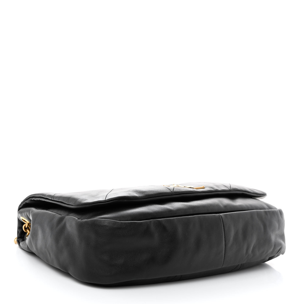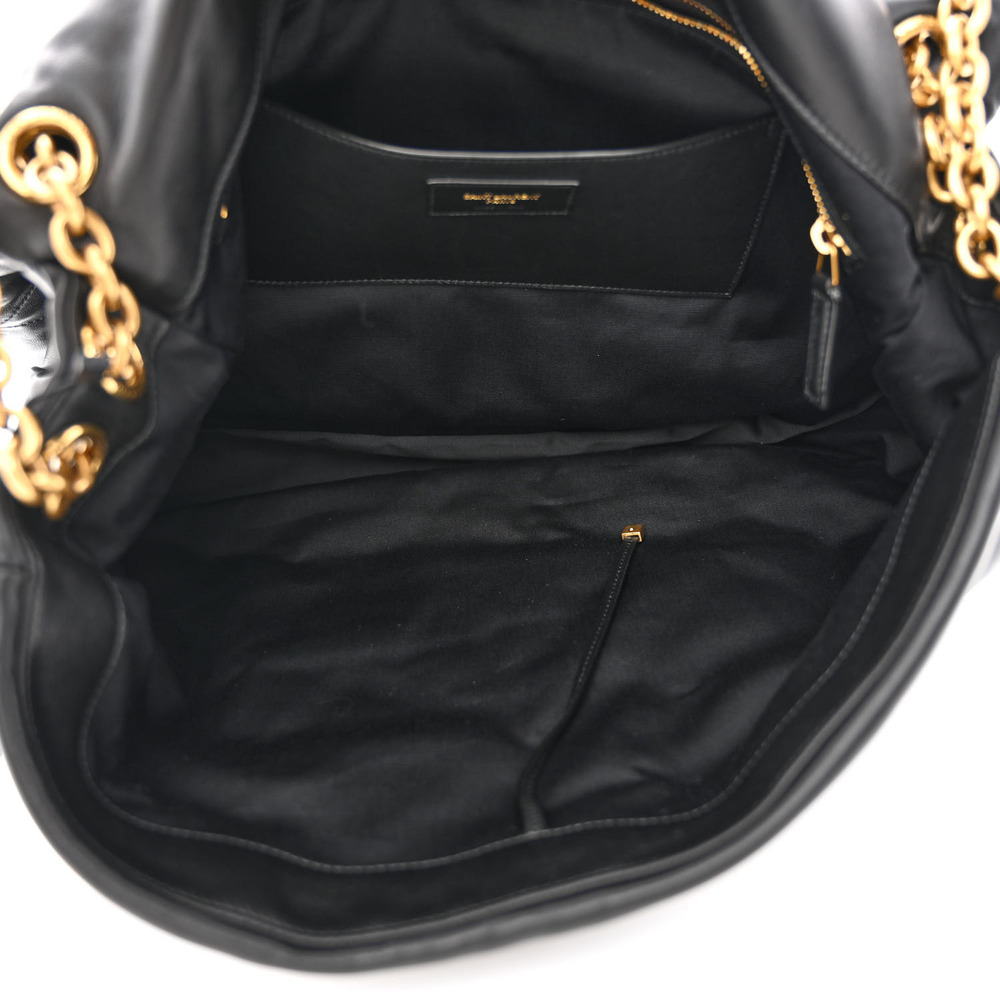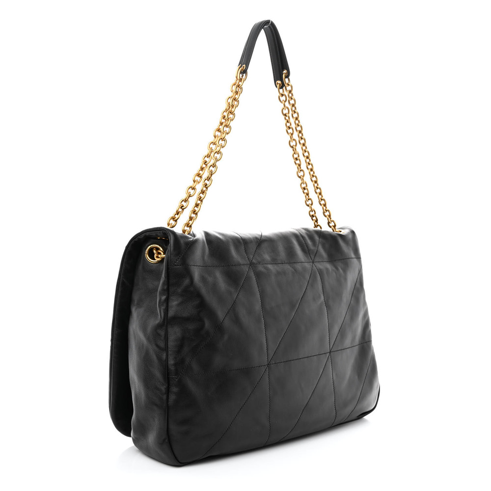 Large supple Nappa leather bag, with quilted ?Carr?? rive gauche? topstitching.Light and SPACIOUS, its sliding chain is adjustable.