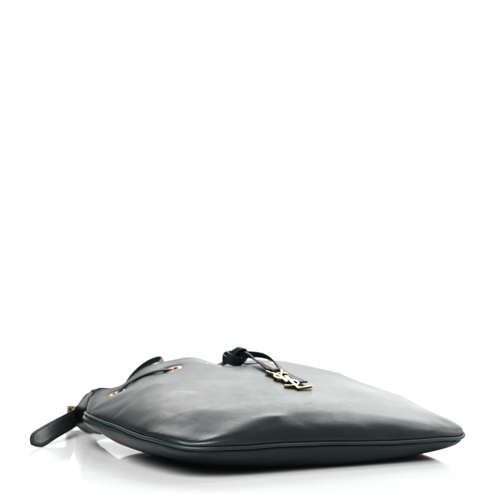 Saint Laurent Calfskin Paris VII Medium Flat Hobo New Vert Fonce