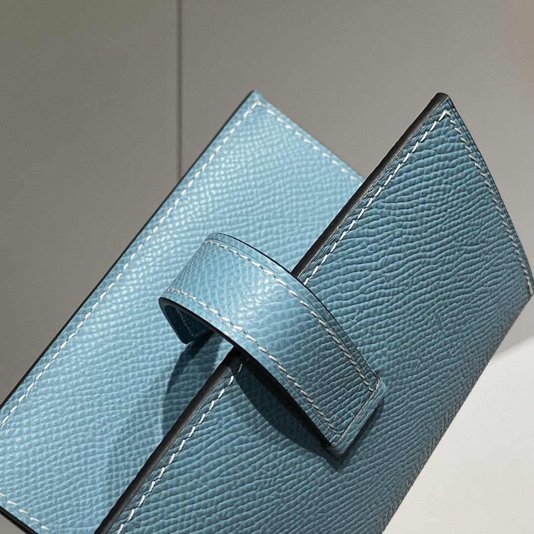 Hermes Epsom Bearn Gusset Wallet Bleu Jean Golden Hardware