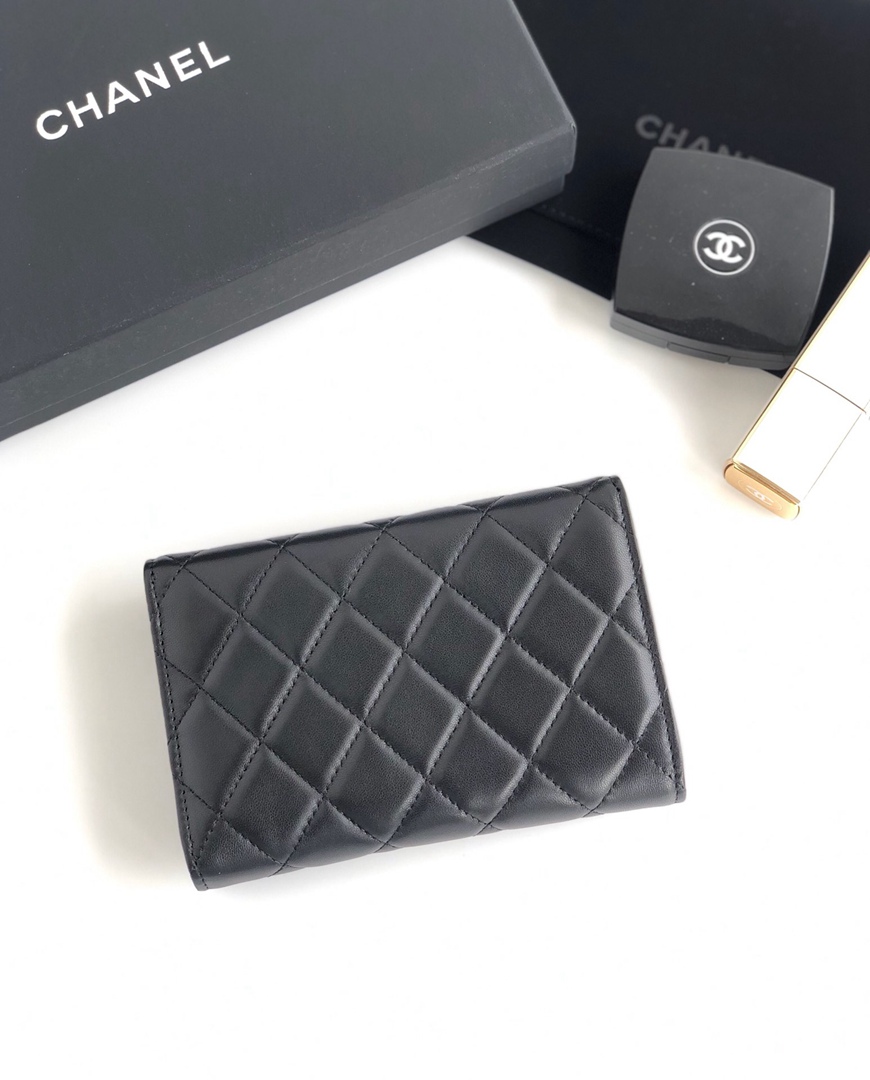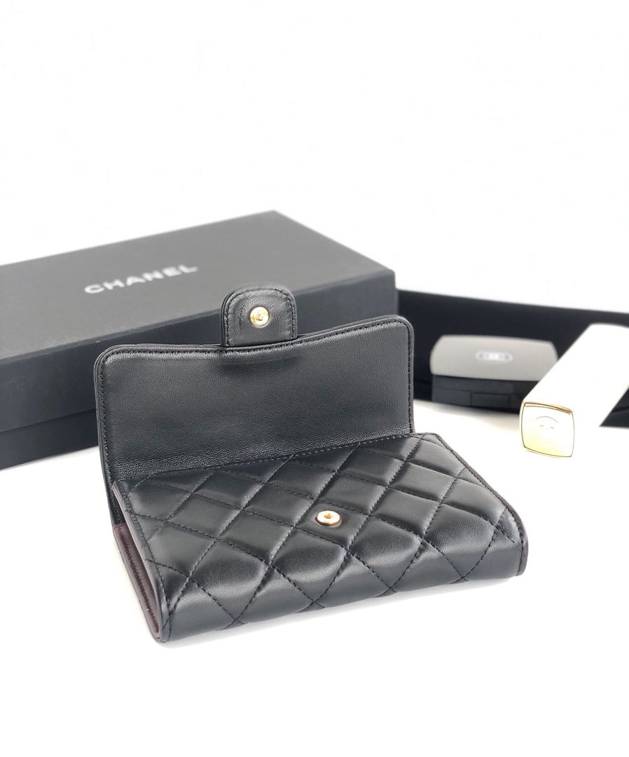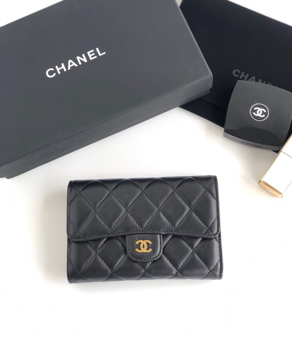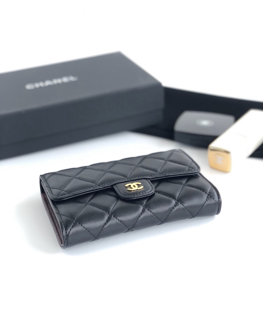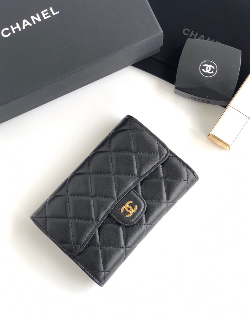 chanel purse cf black shiny lambskin gold hardware medium