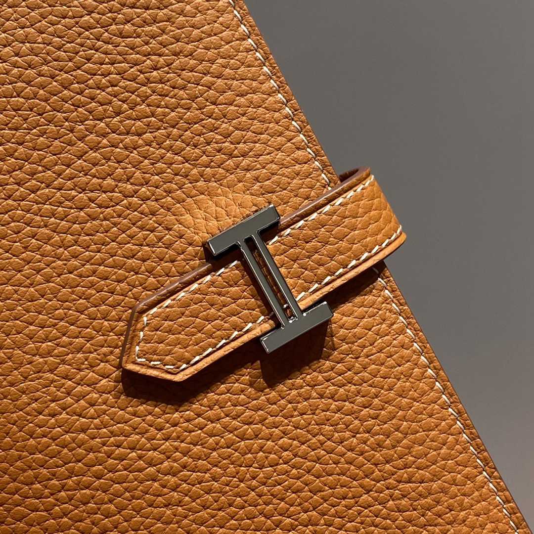Hermes Togo Bearn Gusset Wallet Brown