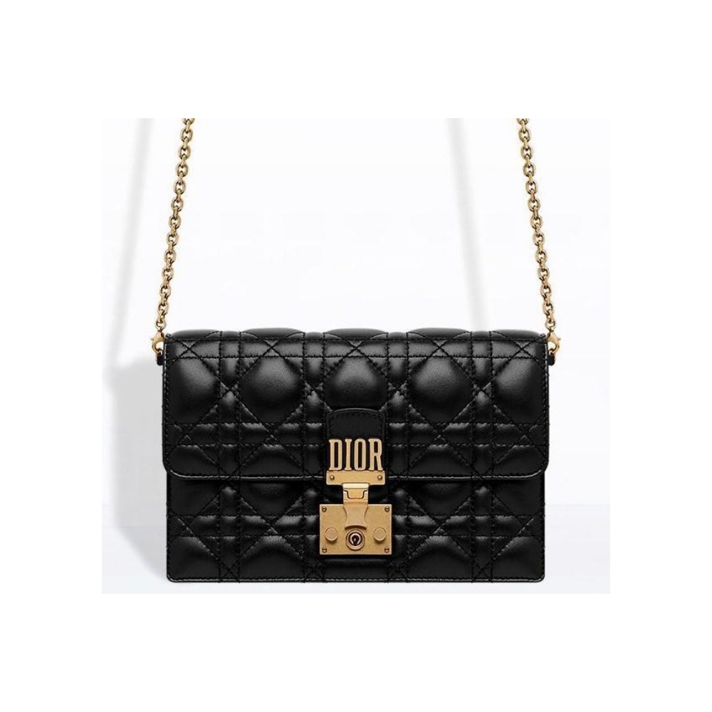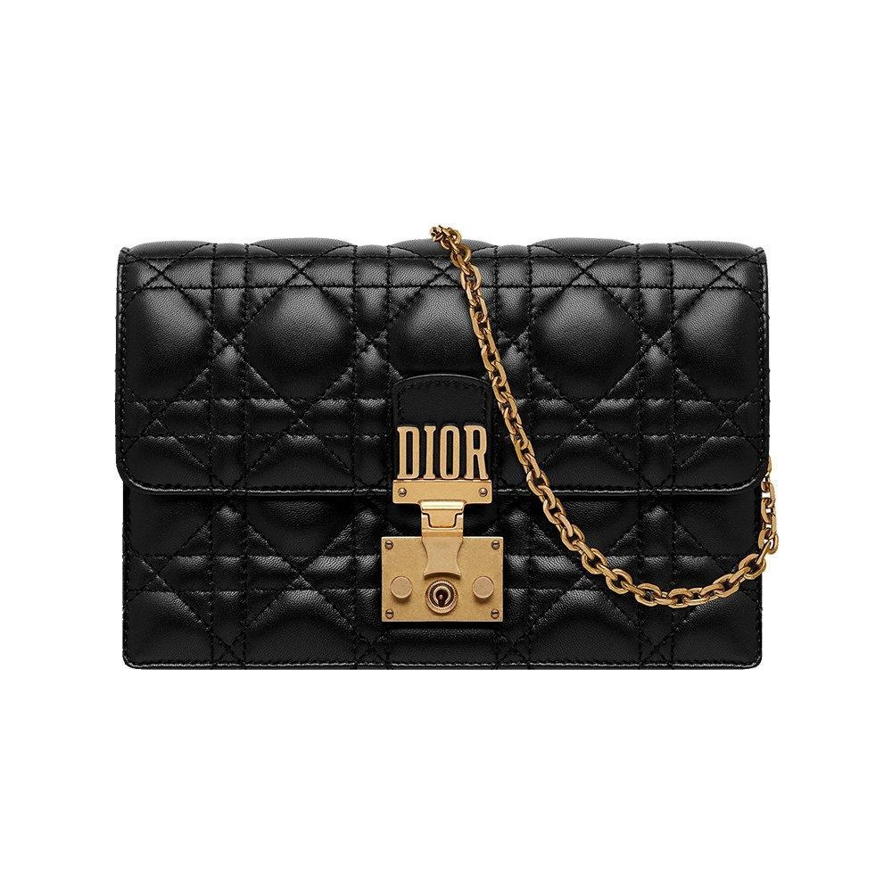Dior Black Cannage Leather Dioraddict Wallet On Chain
