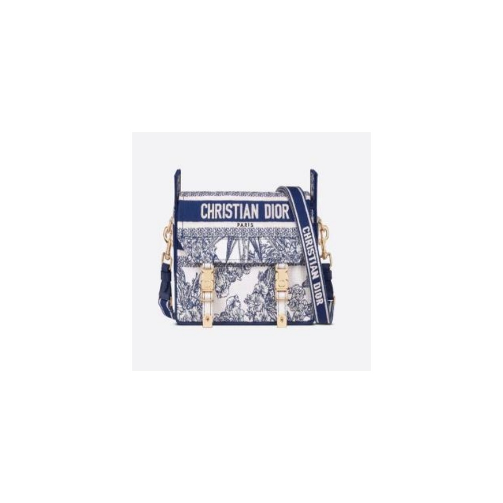Fully embroidered with the blue Dior Oblique motif, the bag is enhanced by a Christian Dior Paris signature flap, as well as sportswear-inspired CD buckles. Equipped with an adjustable and removable shoulder strap, the small, compact messenger bag can be worn over the shoulder or crossbody, and will make an ideal urban companion.