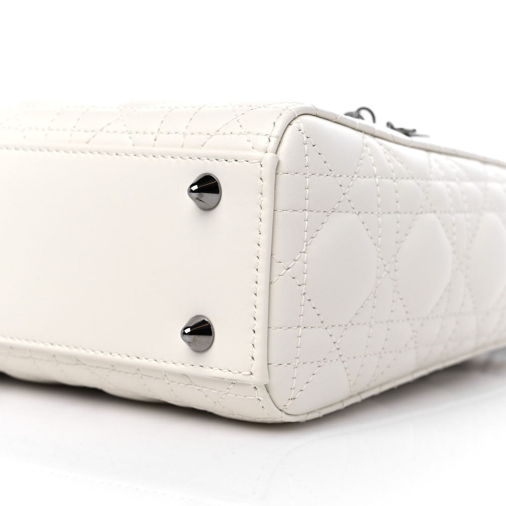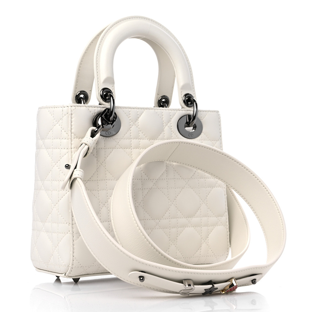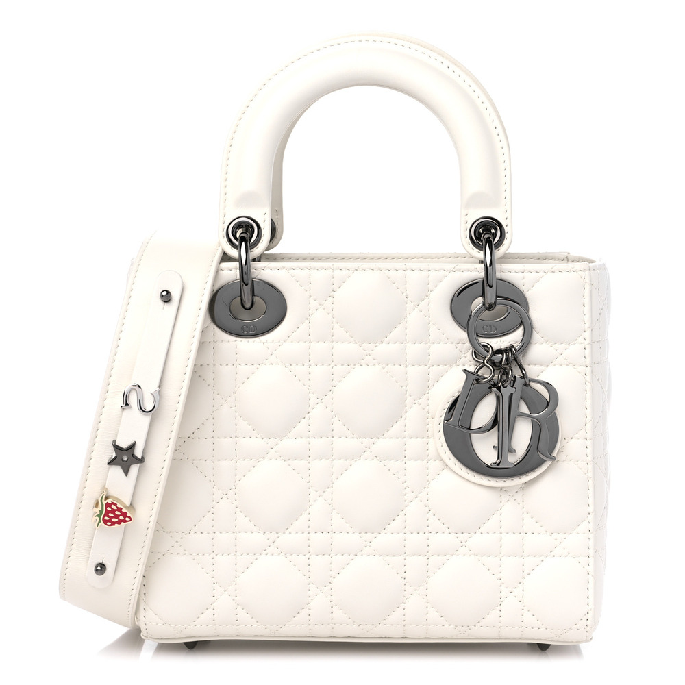 The Lady Dior My ABCDior bag epitomizes the House’s codes. A sleek, refined bag, it is a timeless creation. Crafted in latte lambskin with Cannage stitching, its quilted texture instantly stands out. The ruthenium-finish D.I.O.R. charms further embellish its bold silhouette. The small design may be personalized with badges placed on its wide shoulder strap and can be carried by hand or worn crossbody.