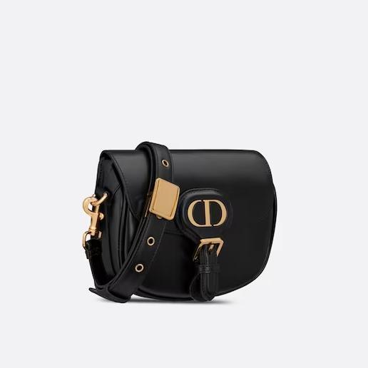 The Dior Bobby bag is a hobo style showcasing sophisticated lines and harmonious proportions. The black box calfskin style has a suede calfskin interior for a supple touch as well as antique gold-finish metal hardware. Featuring a removable and adjustable sliding shoulder strap with a military-inspired buckle, the small Dior Bobby bag can be carried by hand, worn over the shoulder or crossbody.