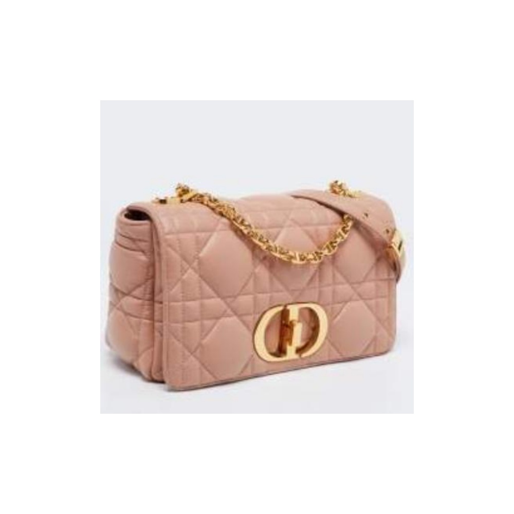 The Dior Beige Quilted Leather Medium Caro Shoulder Bag is a timeless and elegant bag that is perfect for any occasion. It is crafted from beige quilted leather and features the iconic Cannage stitching, which is inspired by the seals of Christian Dior’s perfume bottles.The bag has a flap closure with a gold-tone CD twist clasp and a detachable chain shoulder strap. It also has a spacious interior with a slip pocket.