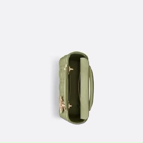 The Lady Dior My ABCDior bag epitomizes the House?s vision of elegance and beauty. Sleek and refined, the timeless style is crafted in Ethereal green lambskin with Cannage stitching,while the pale gold-finish metal D.I.O.R. charms embellish and illuminate the silhouette.